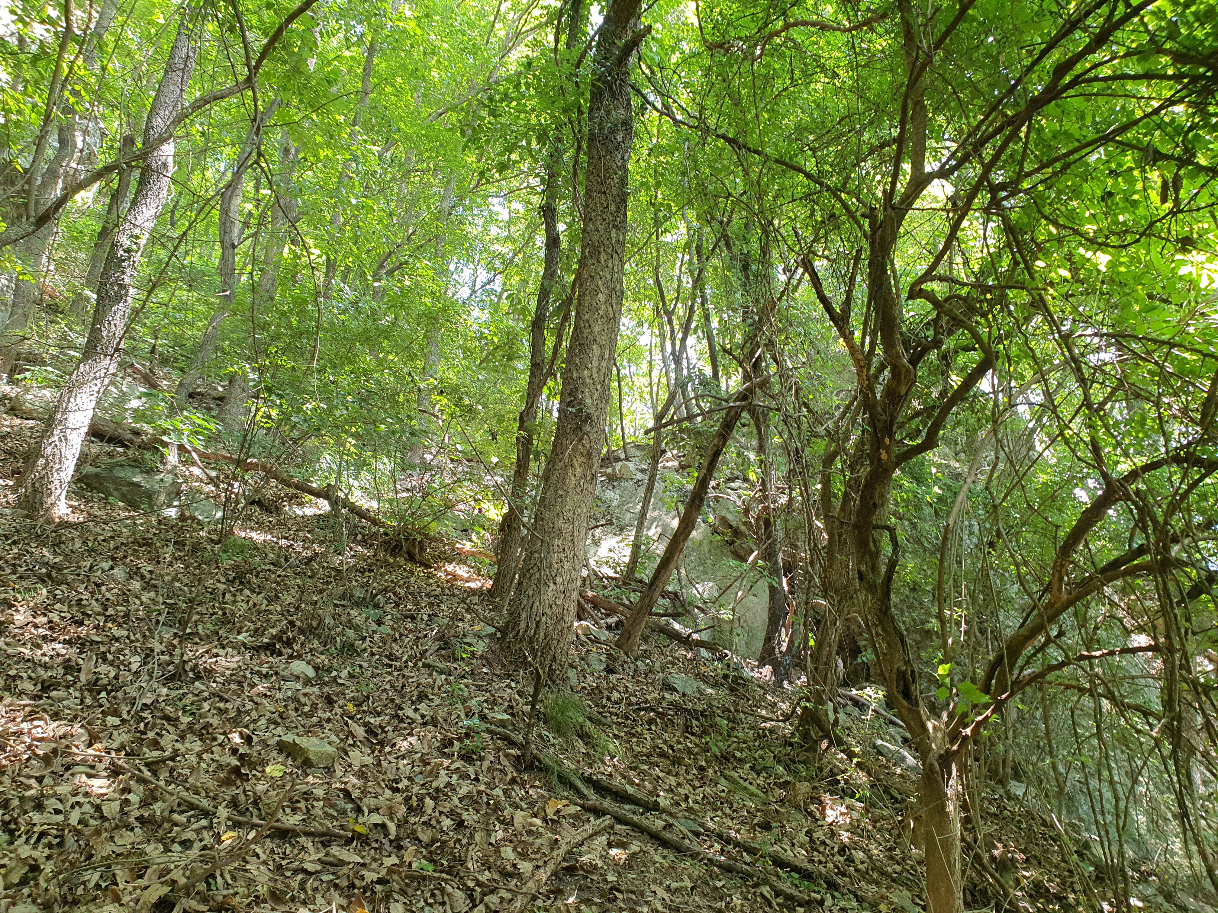 -가파른오르막-암벽 오른쪽 사면길로 진행 우측 능선으로-가파른 오르막,서릉진행-뒵내산 414m