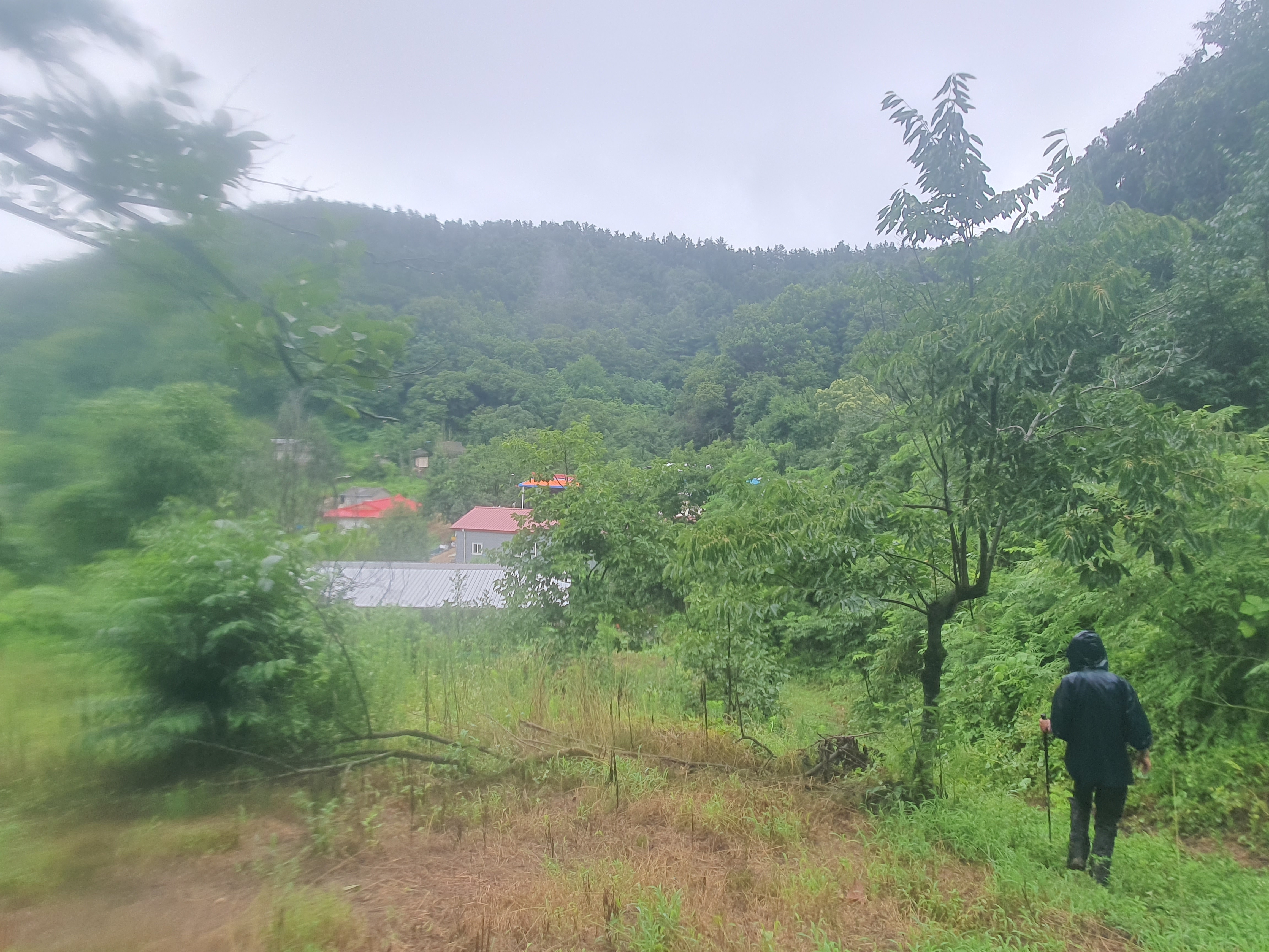 대포2리 마을로 들어가다가 마을초입 다리건너 우측길로 와서 앞에 보이는 벌목능선으로 올라갑니다