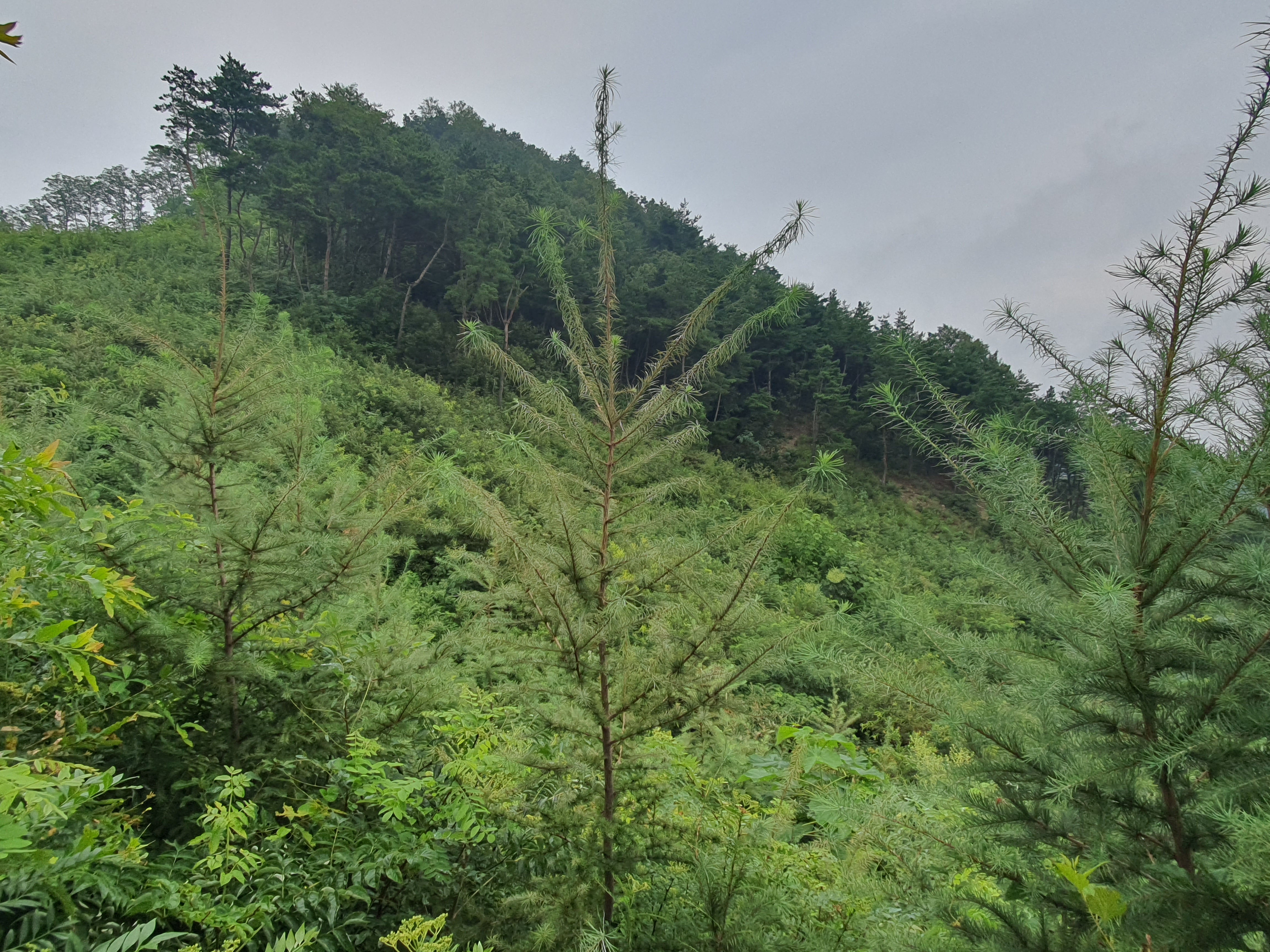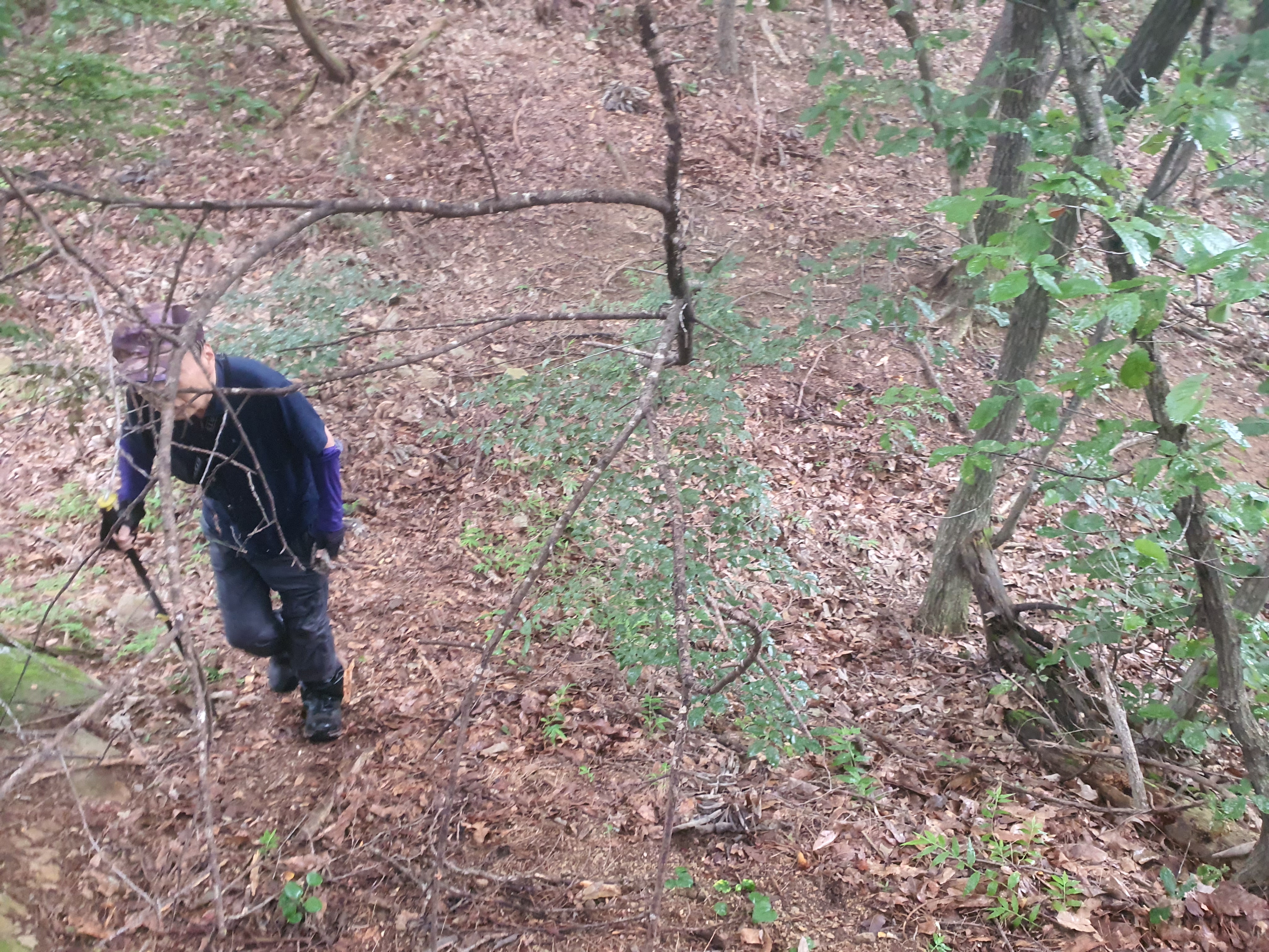 도장산으로 가는 능선길은 오래전에 산판한 곳이라 키 높이에 아카시나무 찔레가시 산초나무 청다래넝쿨등 이루 말할수없는 모든 가시가 달린 잡목들이 깔려있어 진행이 아주 힘듭니다