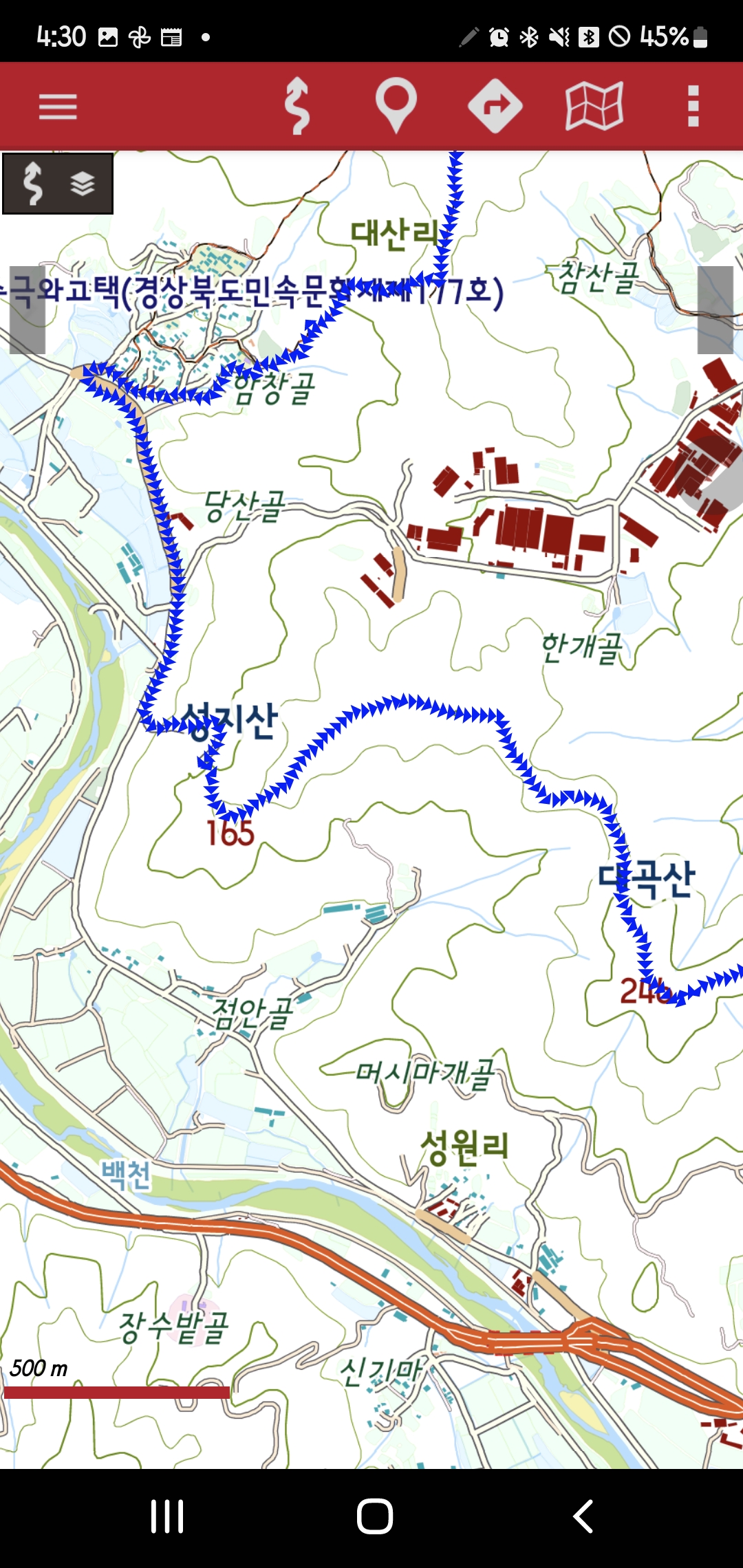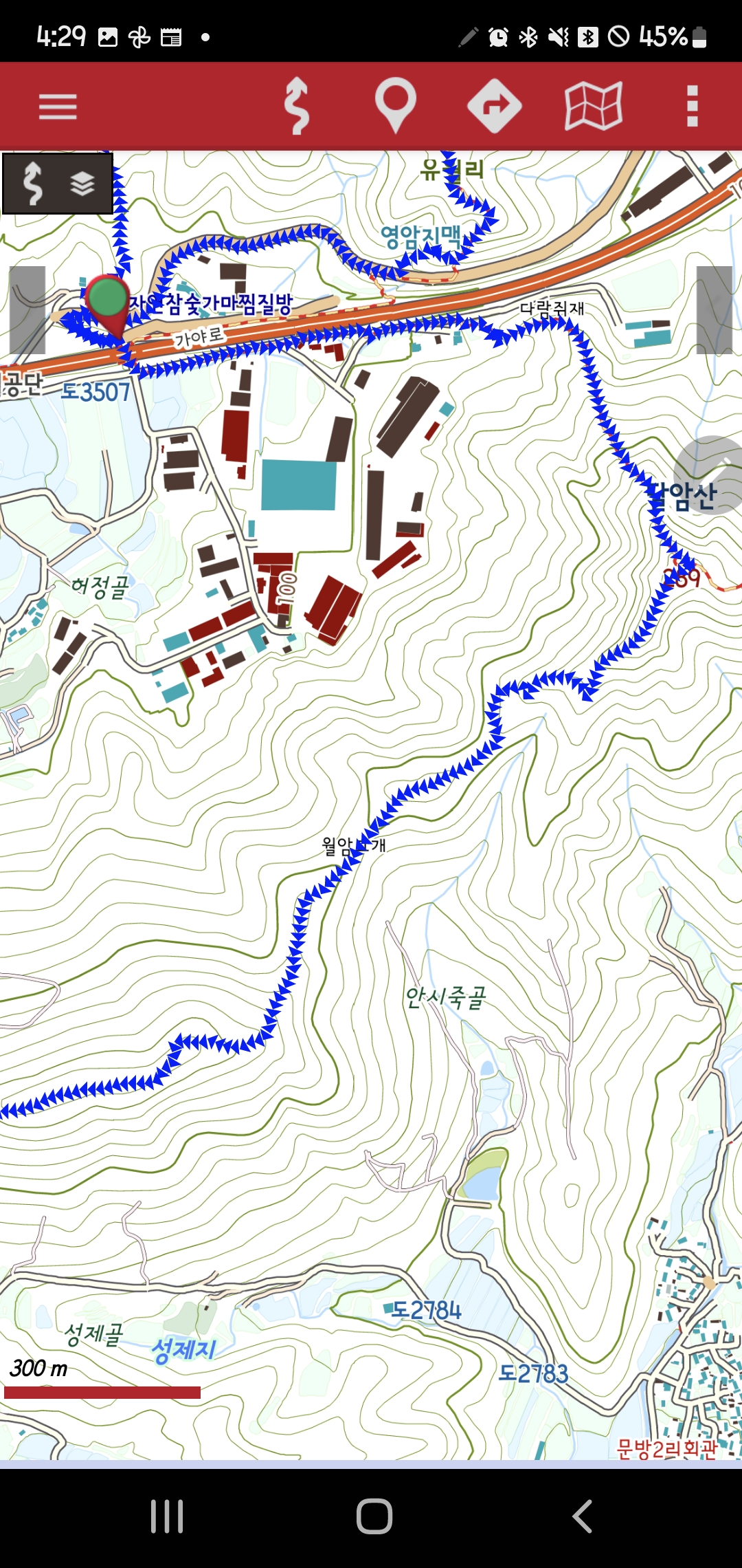 -남동릉진입-묘지-동릉진입-달암산(오룩스)288.9m,멋진 나무-남서릉진행-월암고개-250봉-남서릉진행-대산리