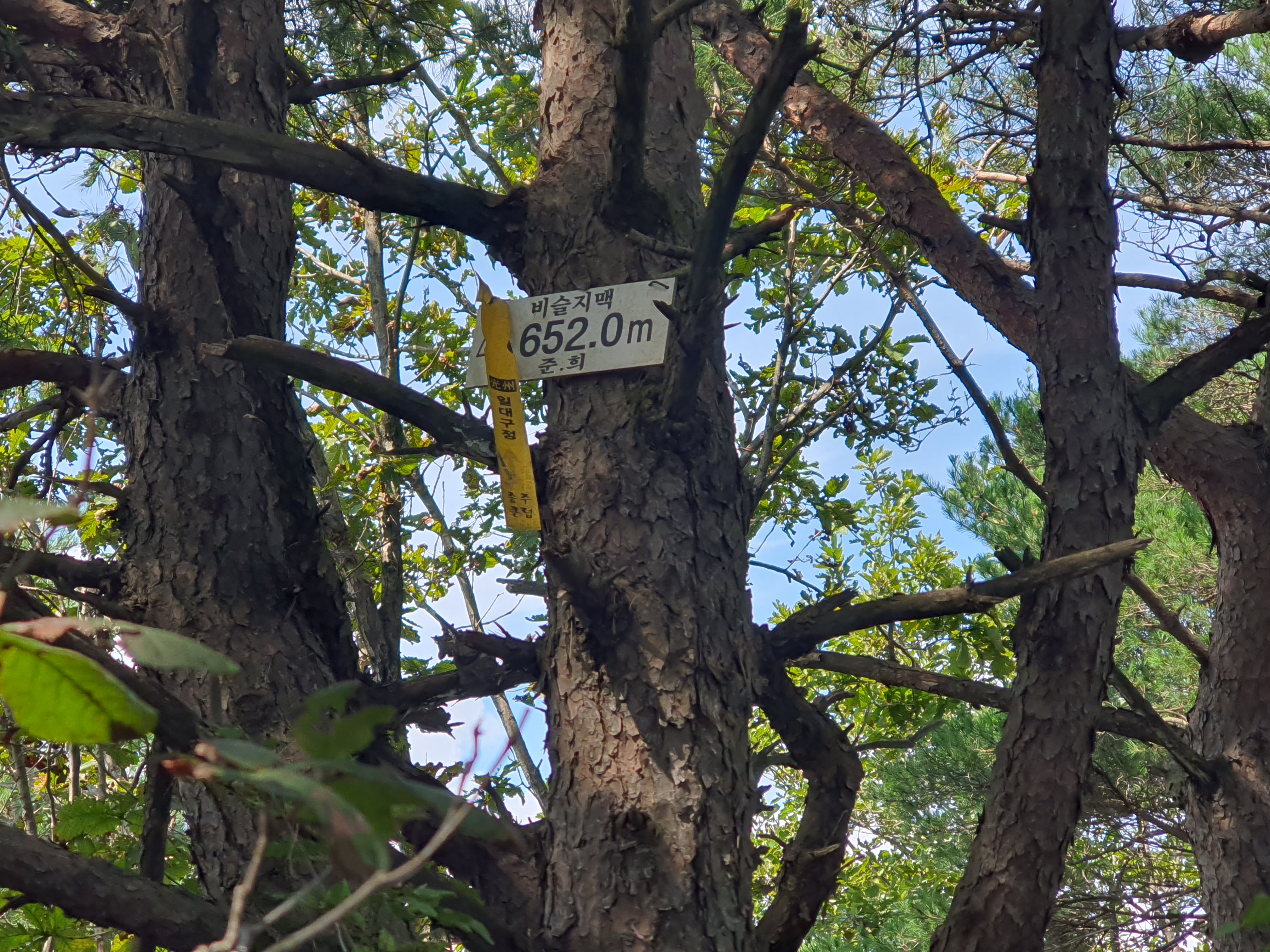 삼각점봉에 잘못 부착된 홍두깨산 간판 홍두깨산은 여기서 남릉으로 더 가야합니다 1