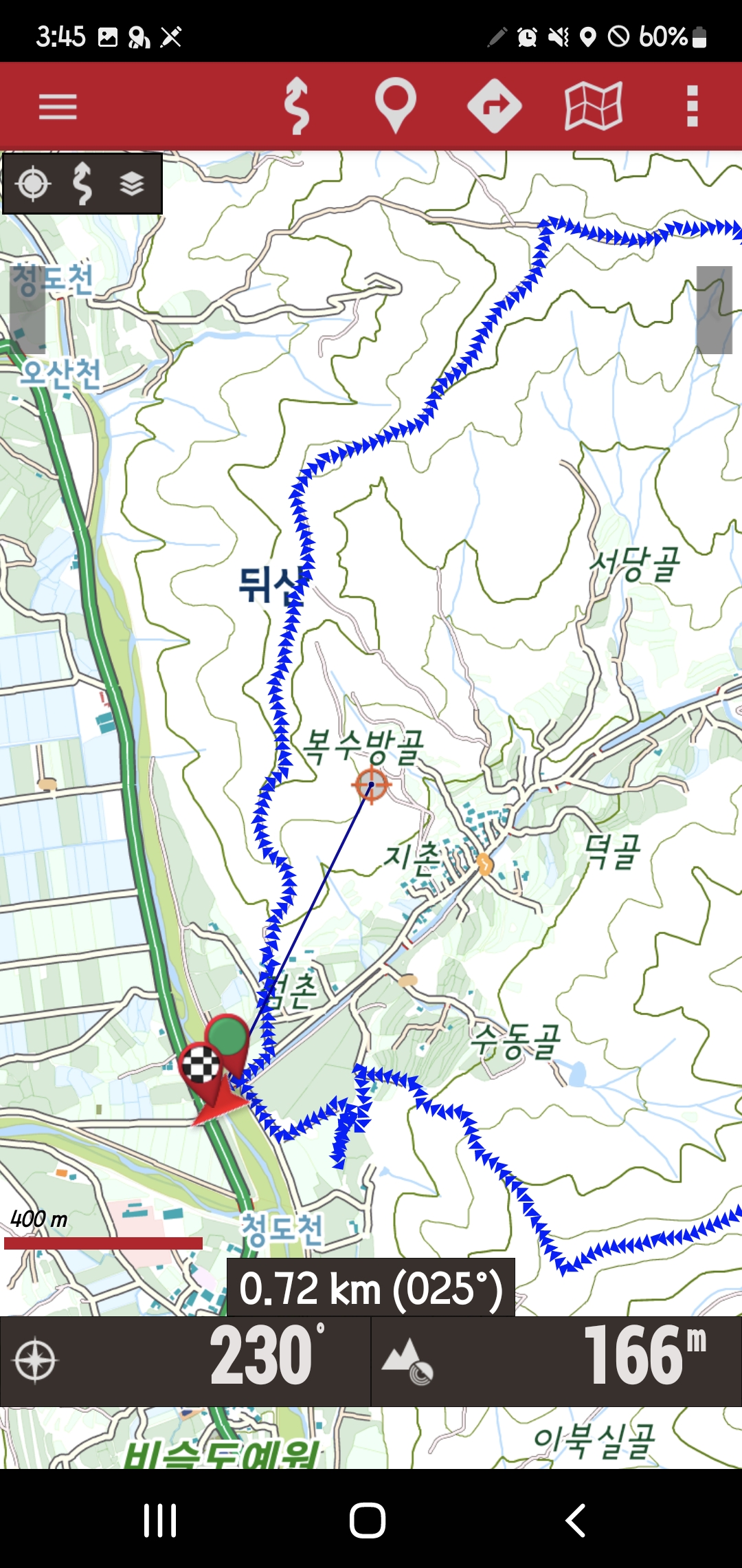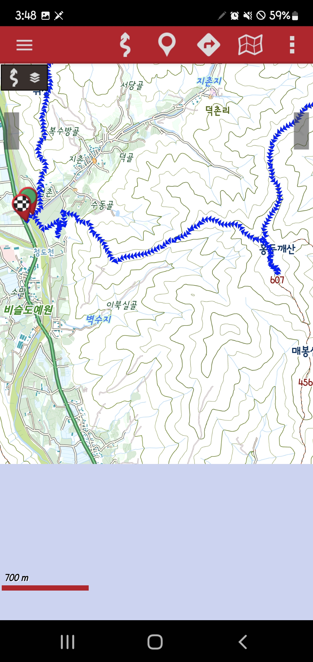 -남릉진행-홍두깨산 607m-능선삼거리로 돌아가서-서릉진행 하산-송전탑-493봉-서릉진행-387봉-북서릉진행 하산