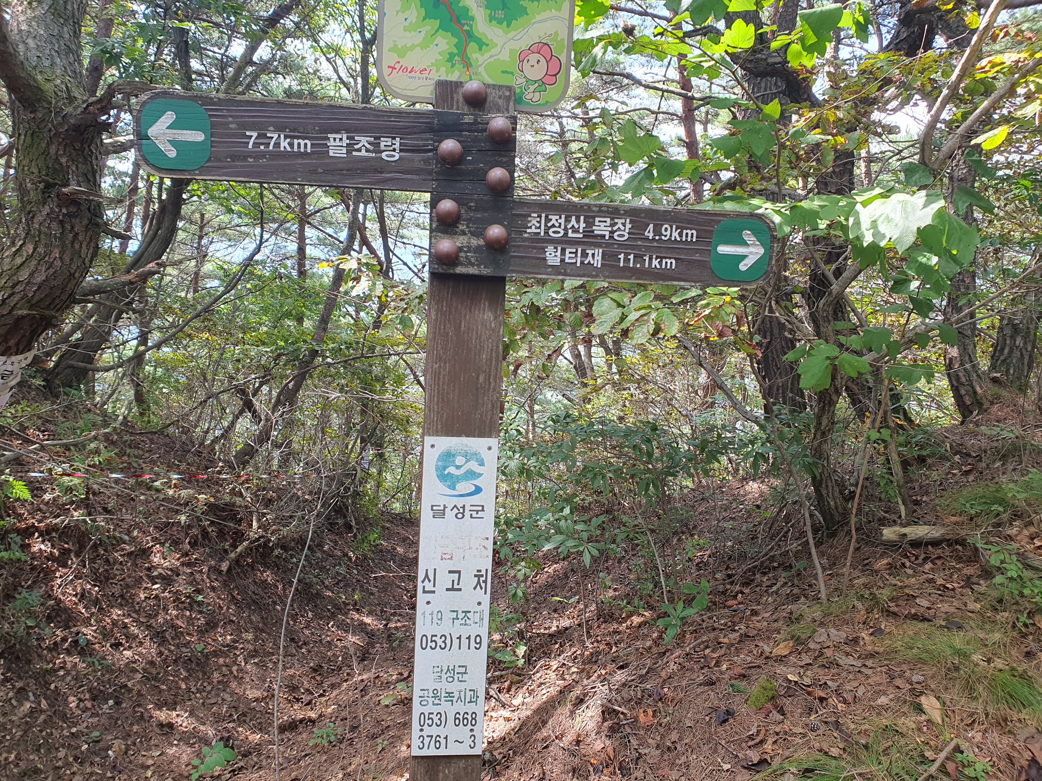 비슬지맥길 갈림 삼거리 여기서 남서릉 진행합니다