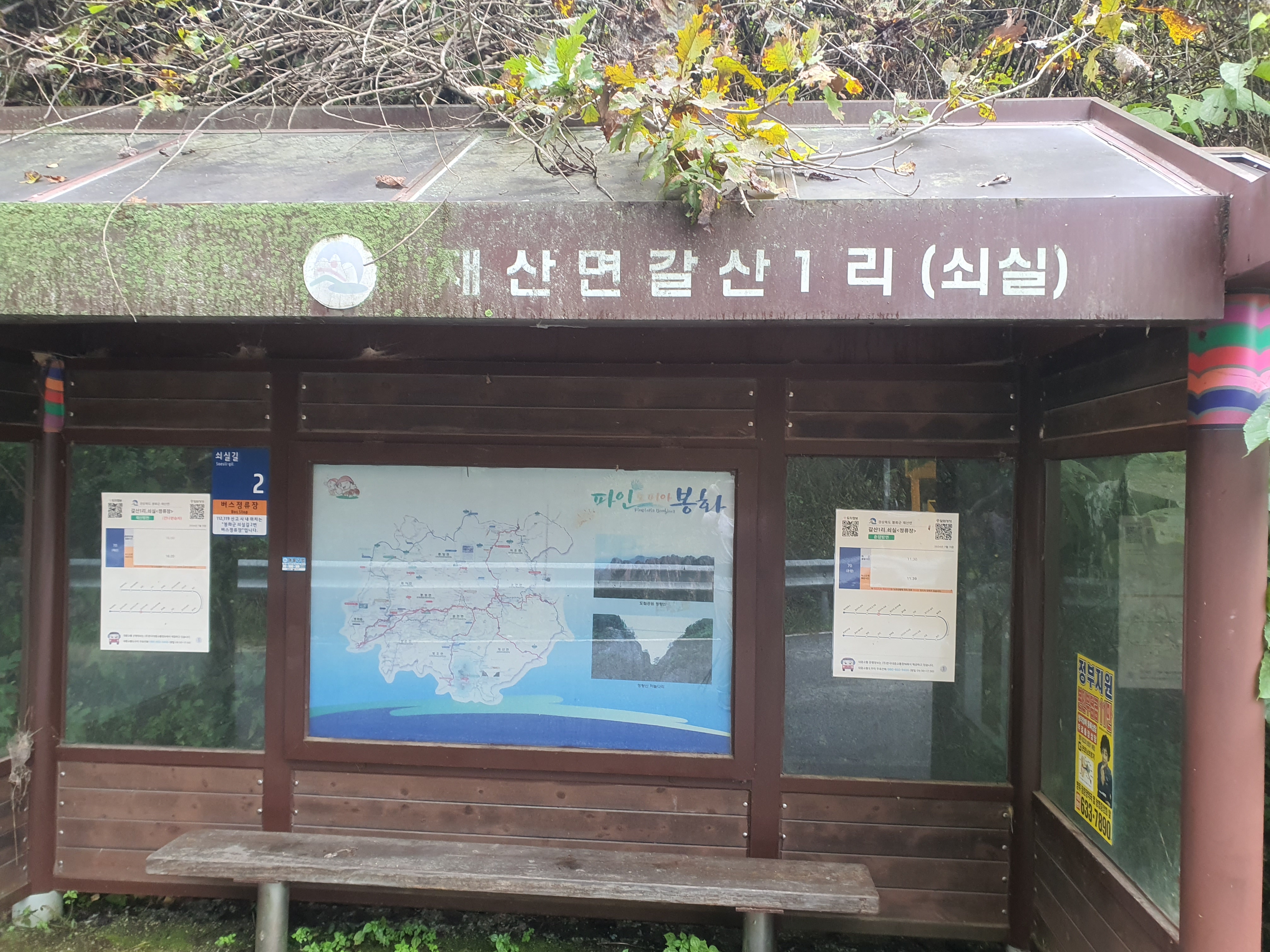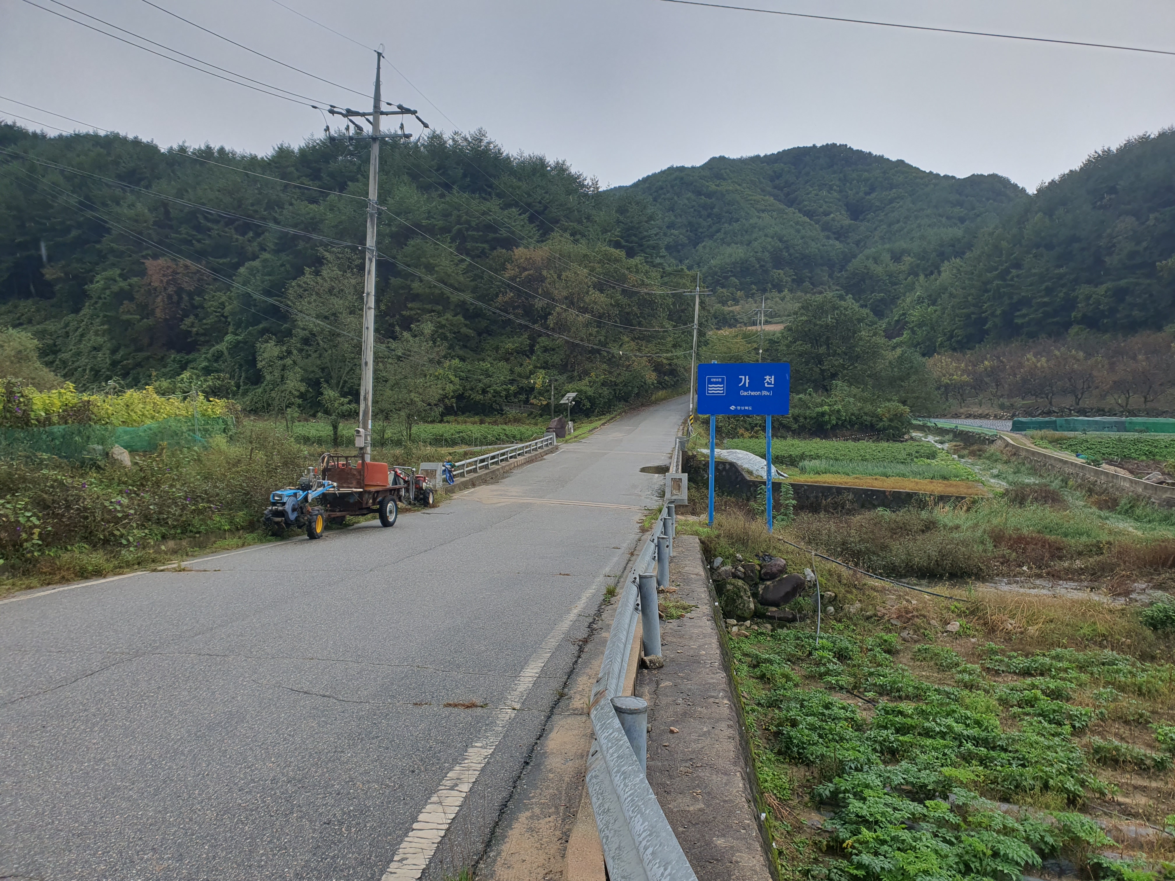 도로로 다시 내려와서 갑산1리 버스정류장 지나서 새실골까지 내려갑니다