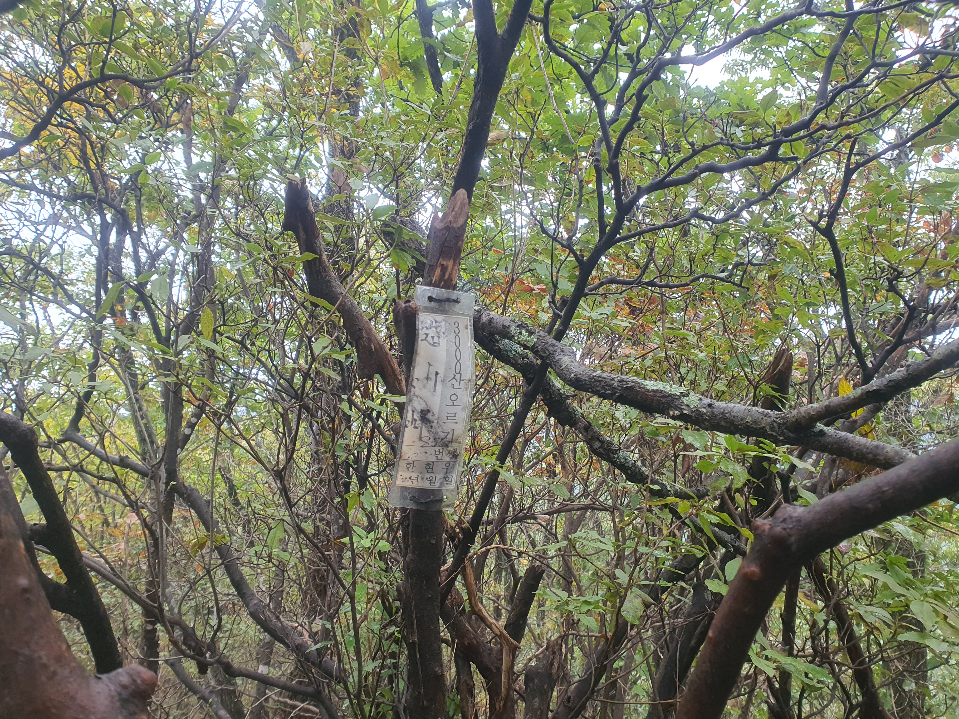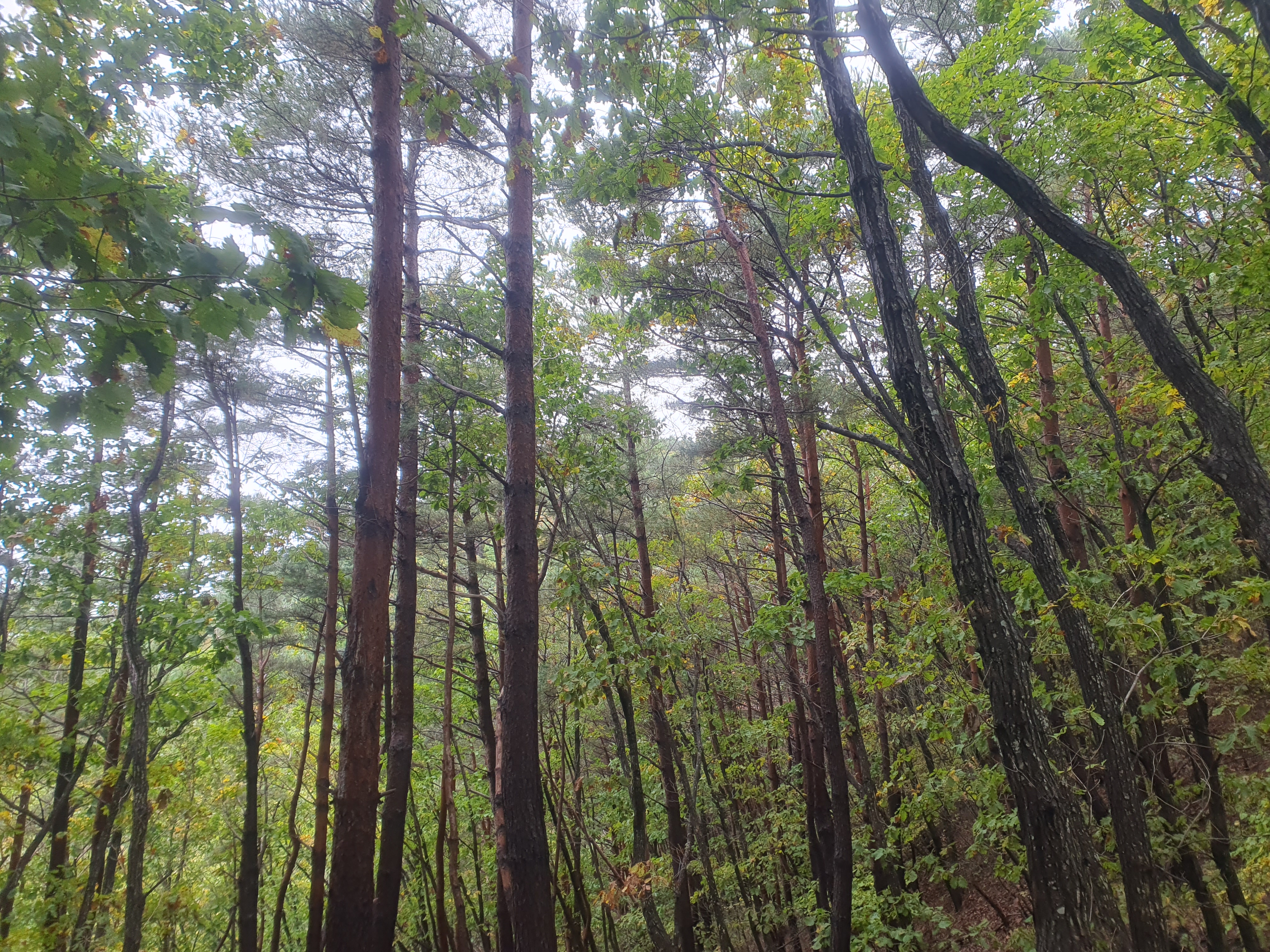 나무들 사이로 보이는 올라야할 비내골봉