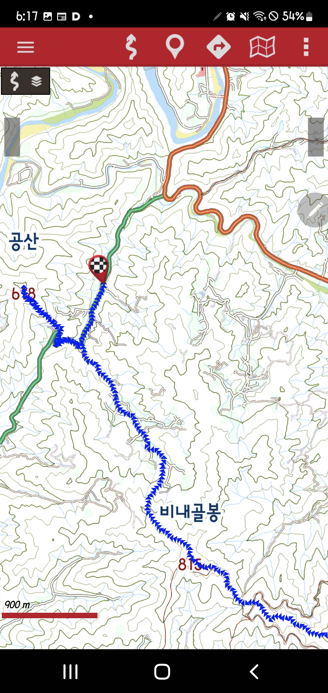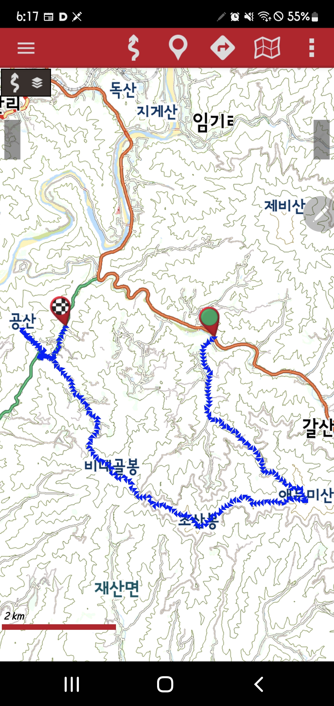 -능선삼거리-북서릉진행-된비알-공산 618m,삼각점-갈산1리버스정류장으로 돌아가서-북서방향 길따라