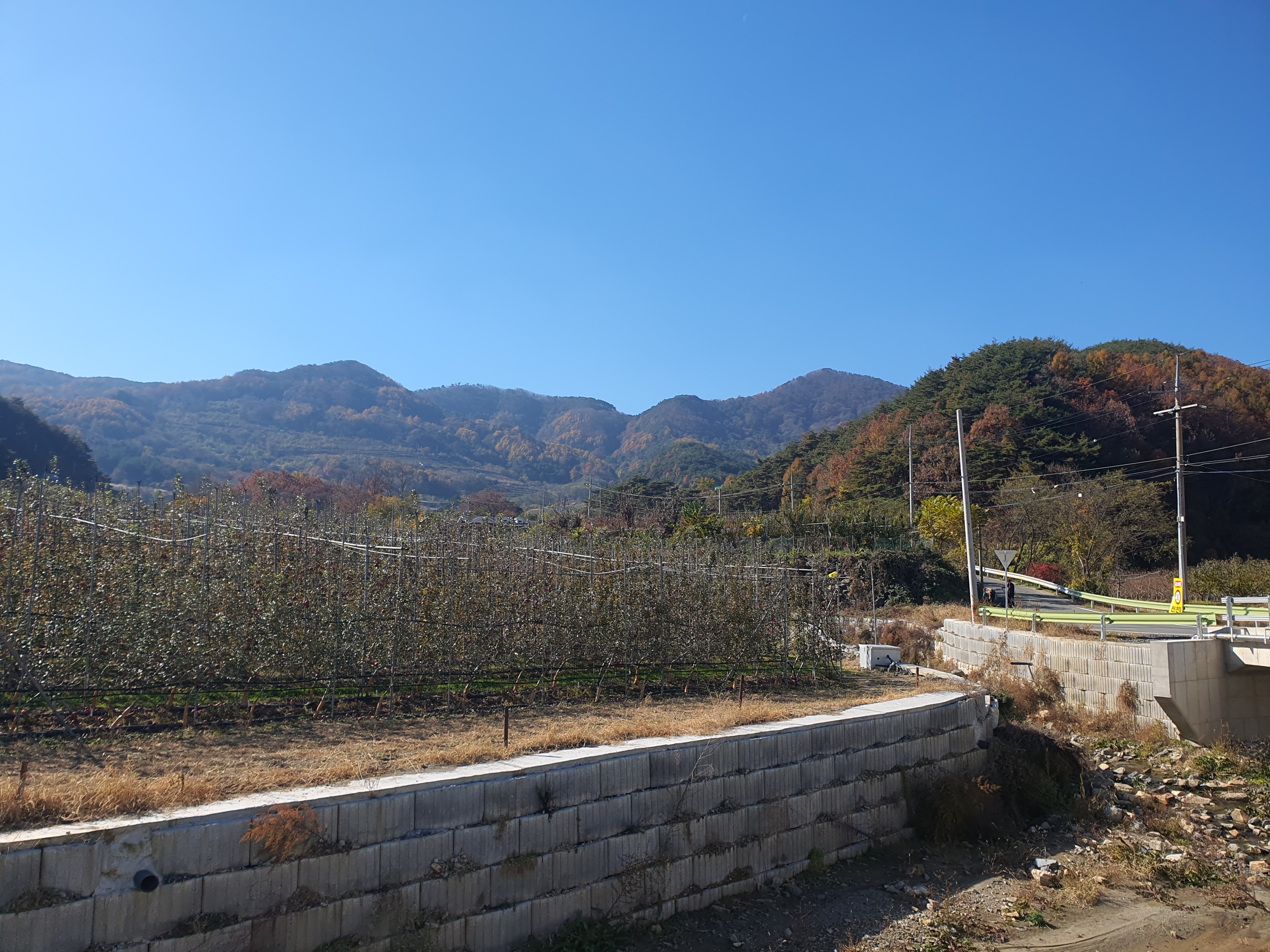 화북 광역 상수원지 그위로 방가산을 올려다봅니다