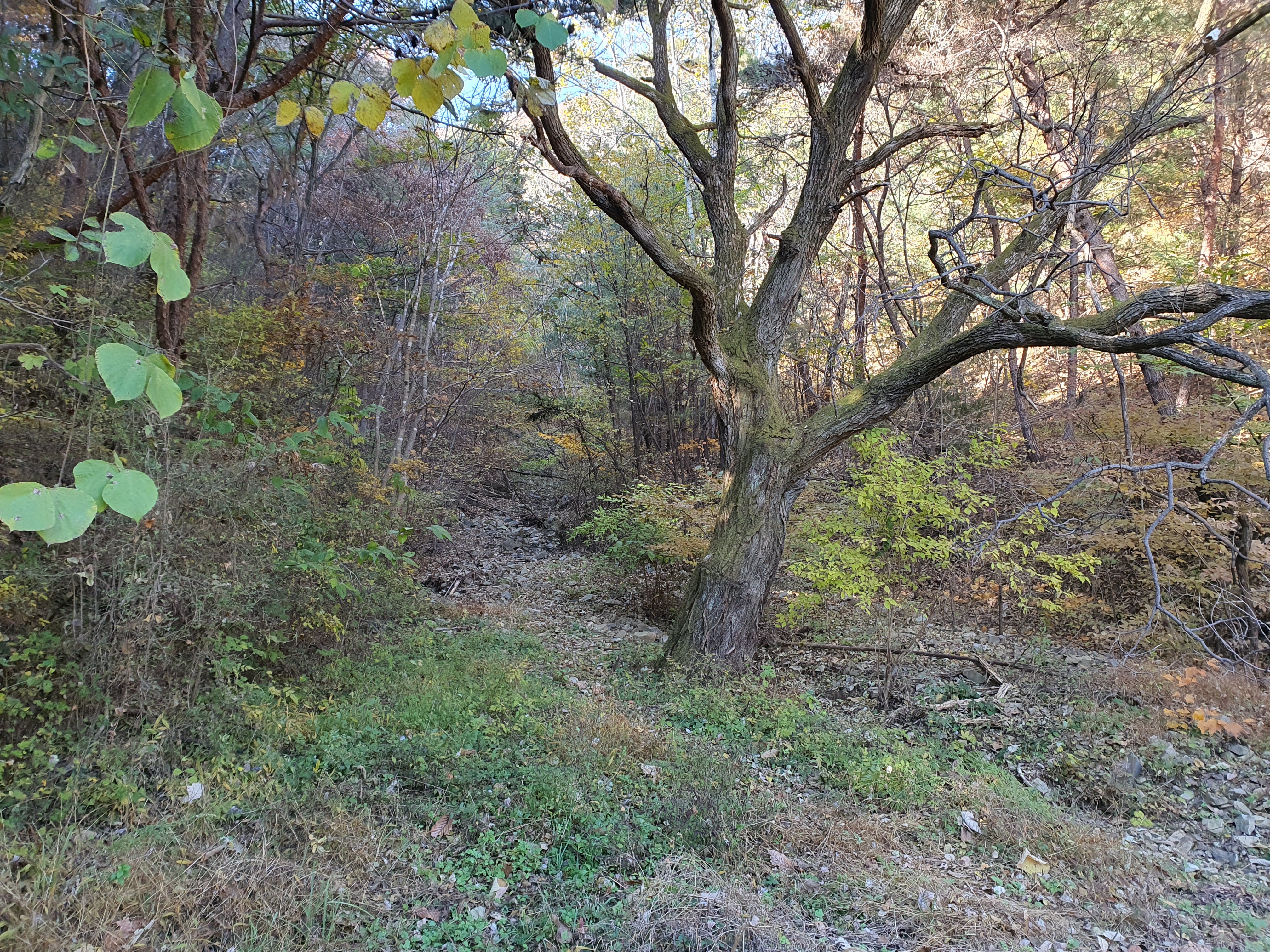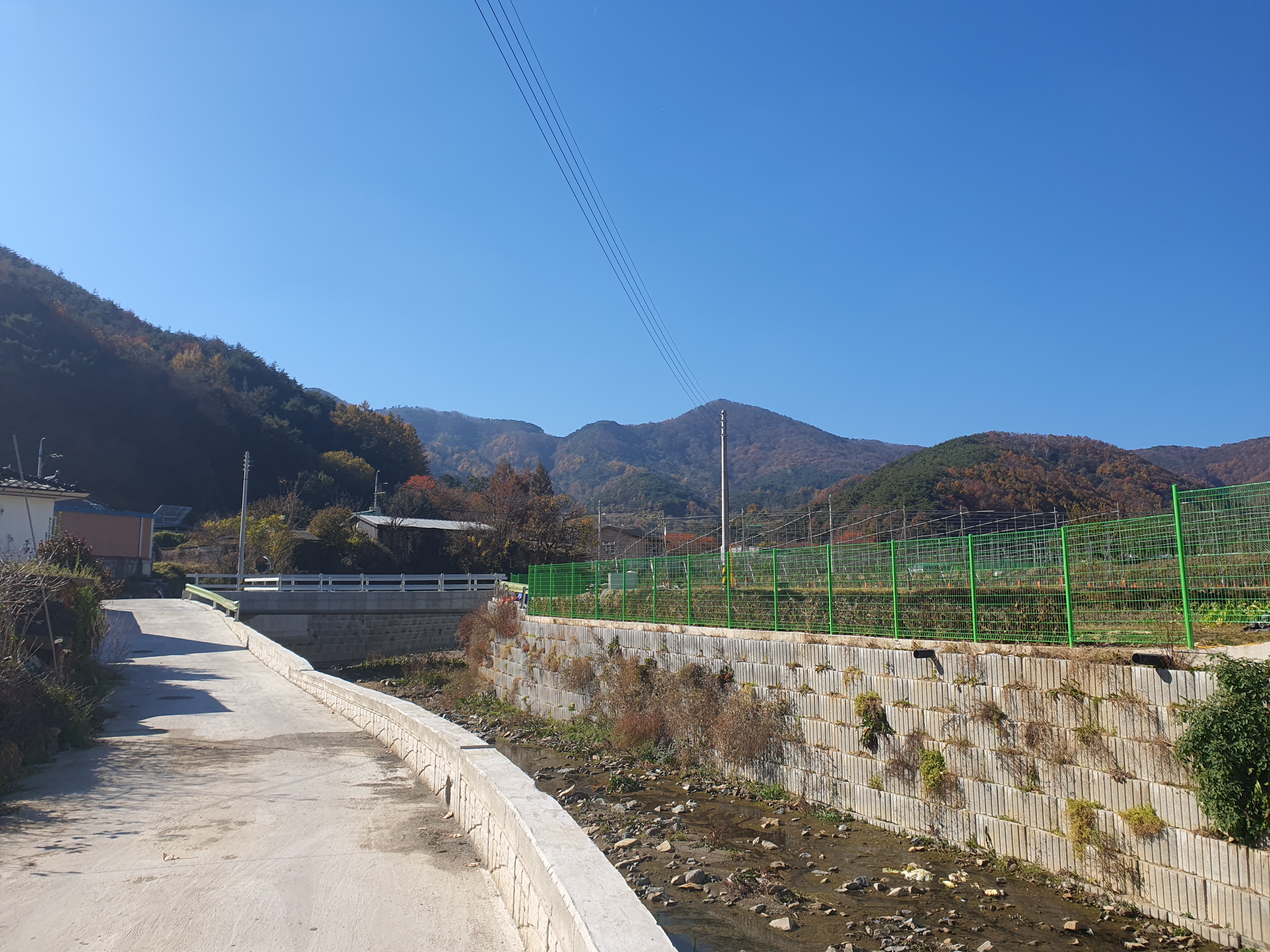 이공장 좌측 뒤로해서 개천을 건너 능선 진입합니다