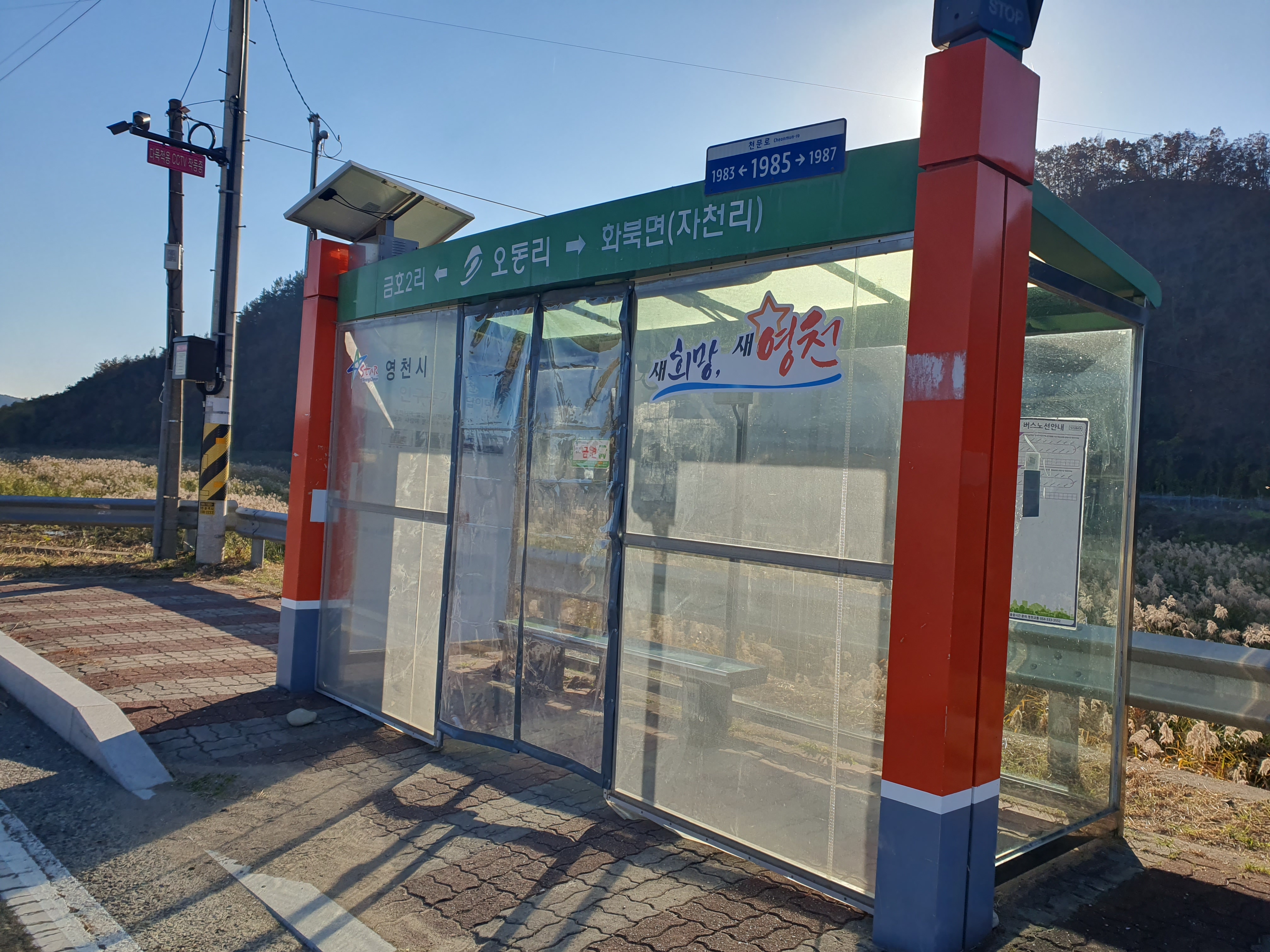 -안부,공장-남릉진입-장자봉 195.4m,삼각점-천문로로 돌아가서-오동리버스정류장에서 버스 탑승-삼창2리버스정류장