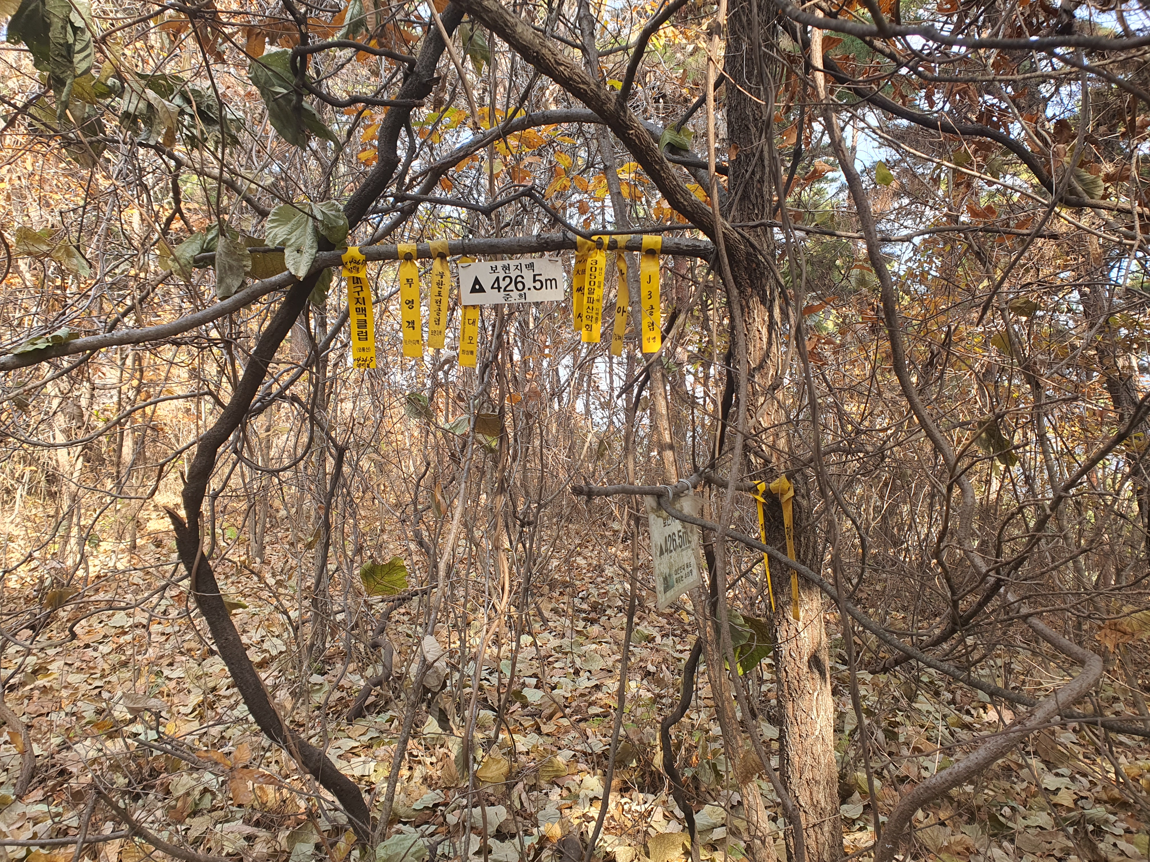 -남릉진행-398봉-동릉진행-양지봉 427m,삼각점-남동릉진행-불출산(주월산)439m,산불감시초소