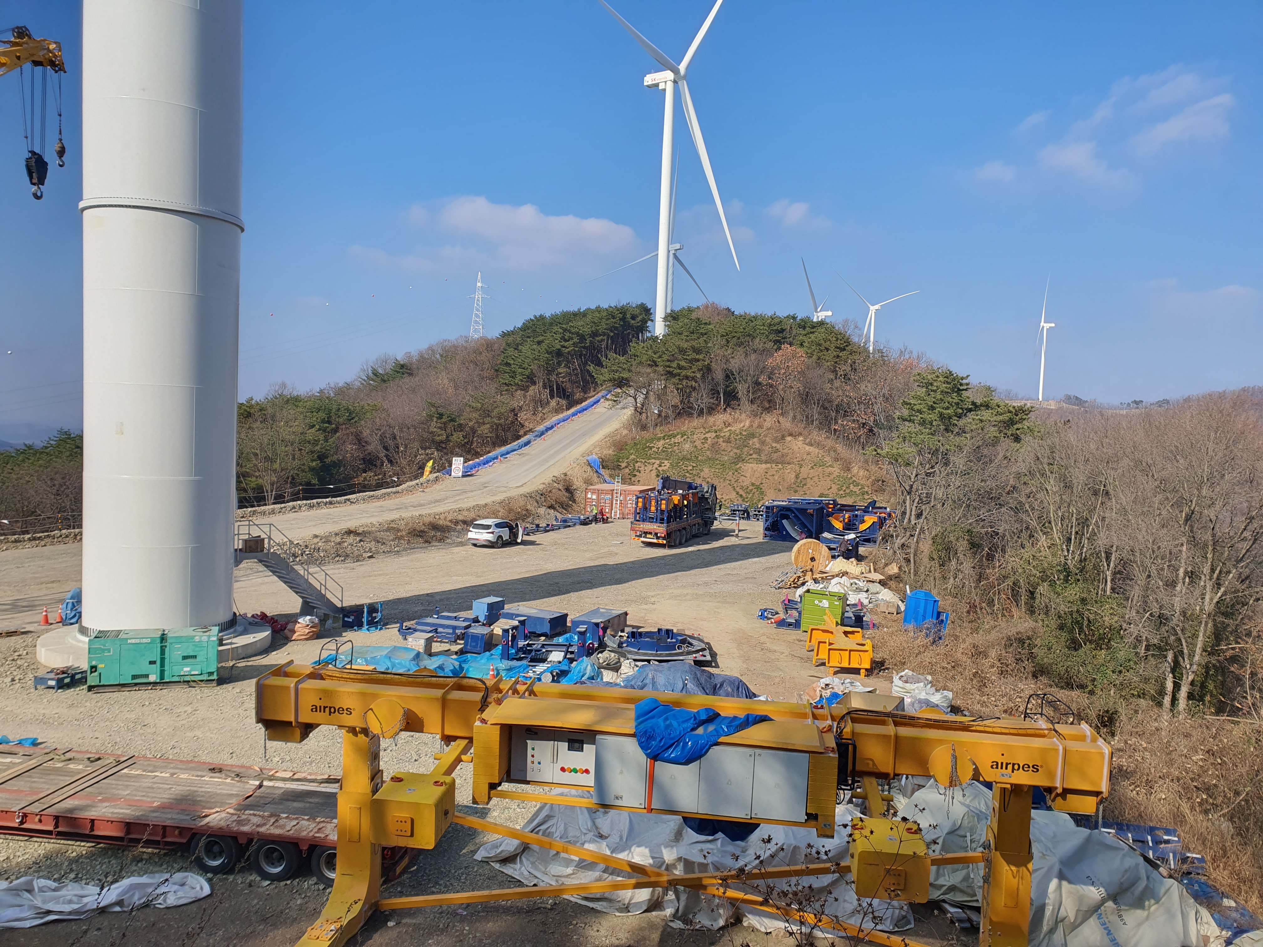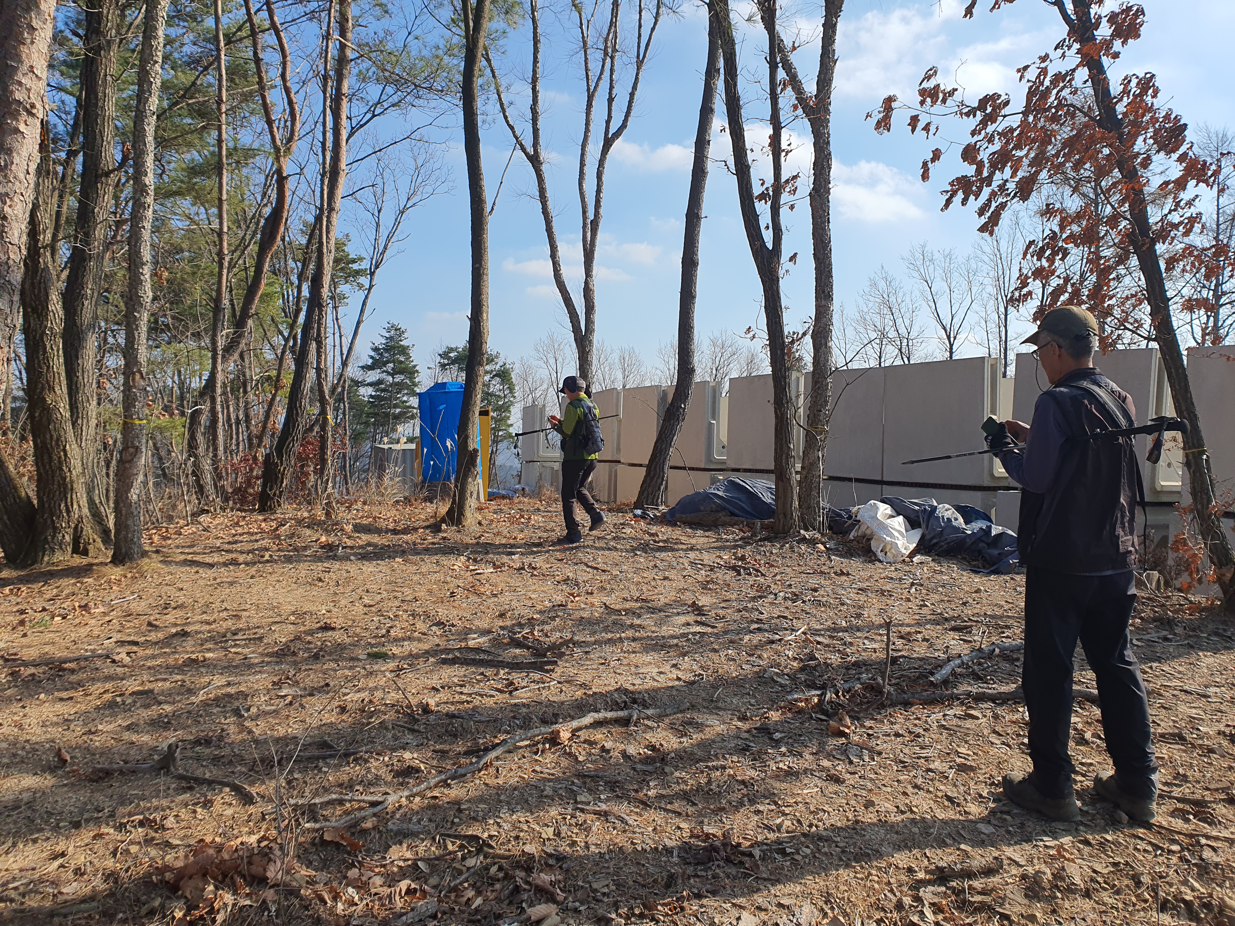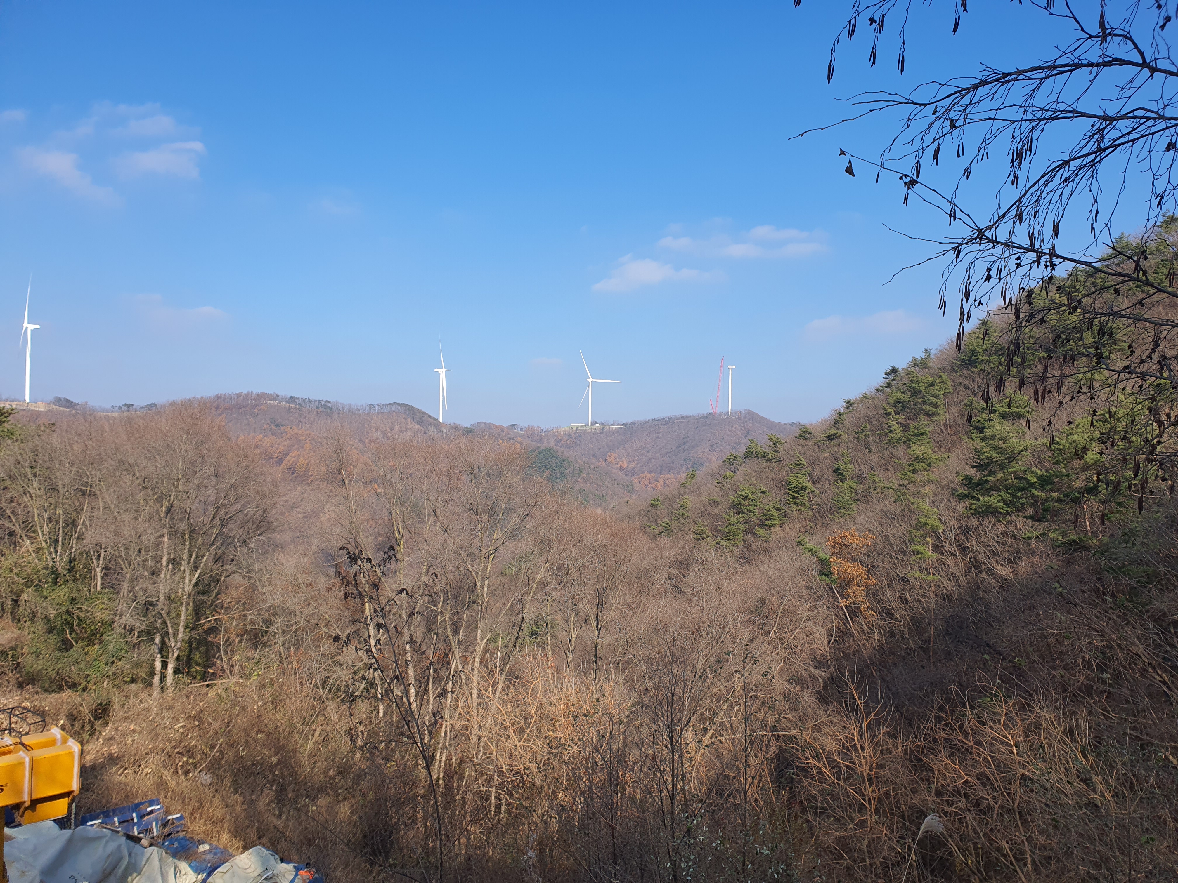 -절개지역(풍력발전기 건설현장)-북북서릉진행(도로따라)-635m 삼각점봉(여기서 황학산 왕복)