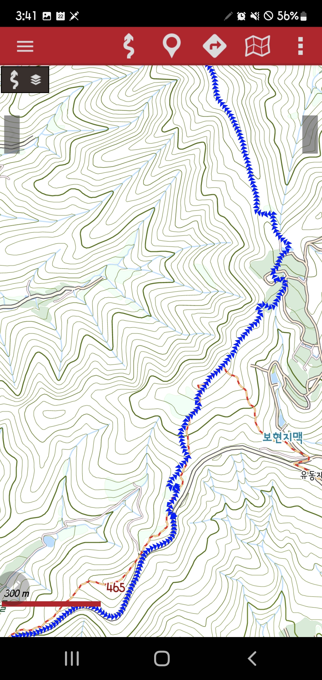 -남동릉진행-주월재-남동방향 도로따라 진행-465봉-550봉 보현지맥갈림삼거리-북동릉진행