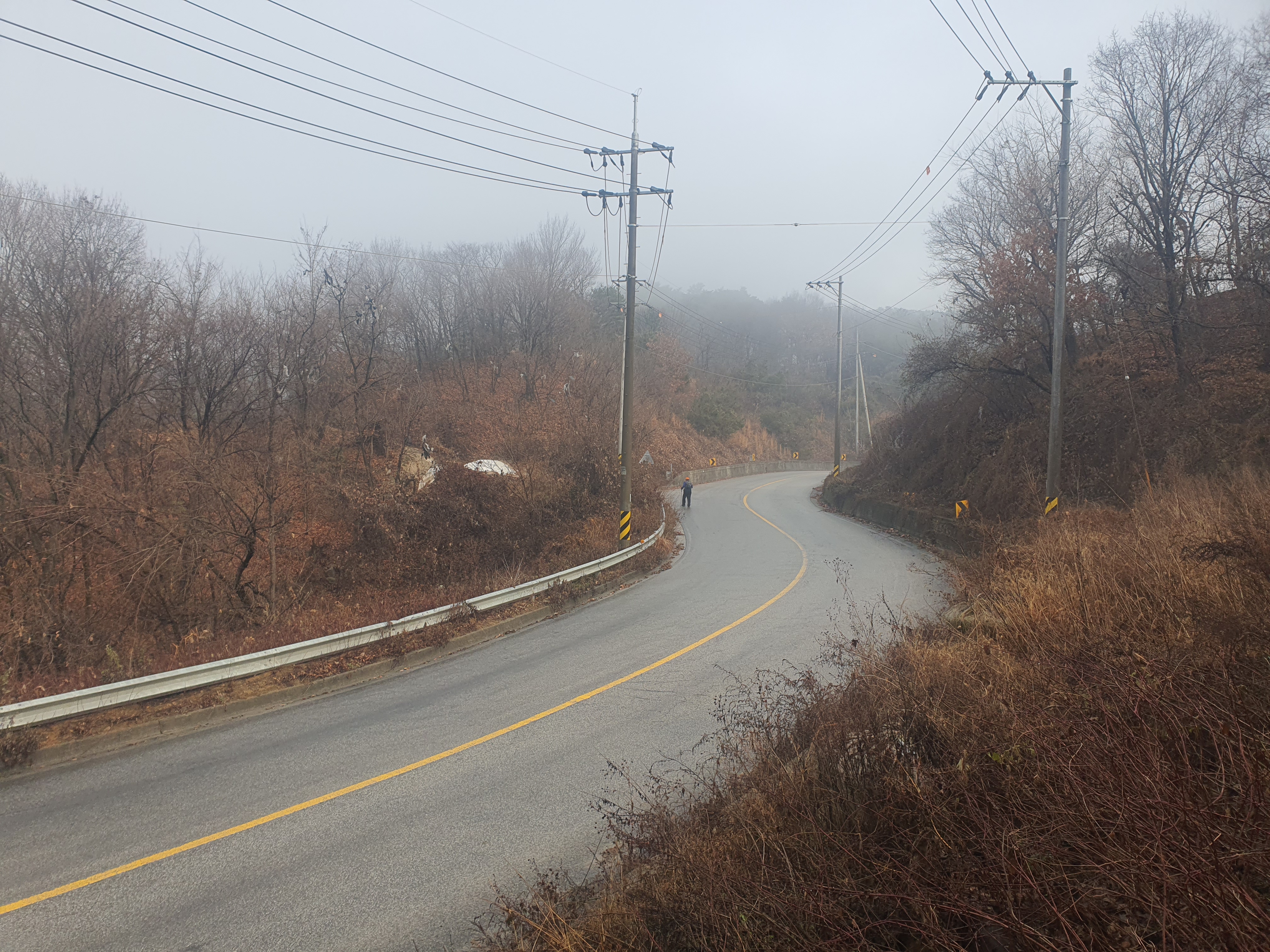 점모퉁이 고개로 내려서서 북서방향 도로따라 내려갑니다