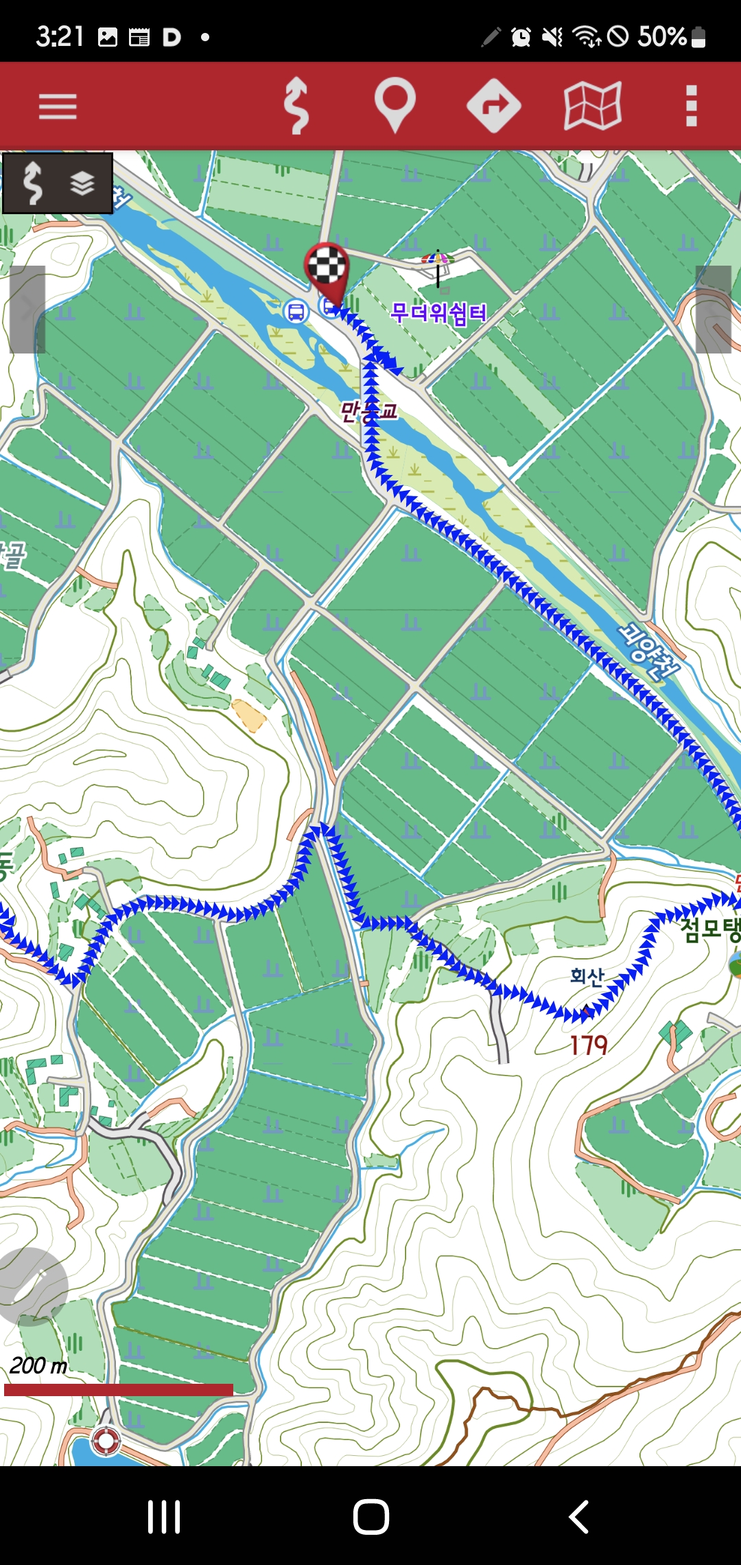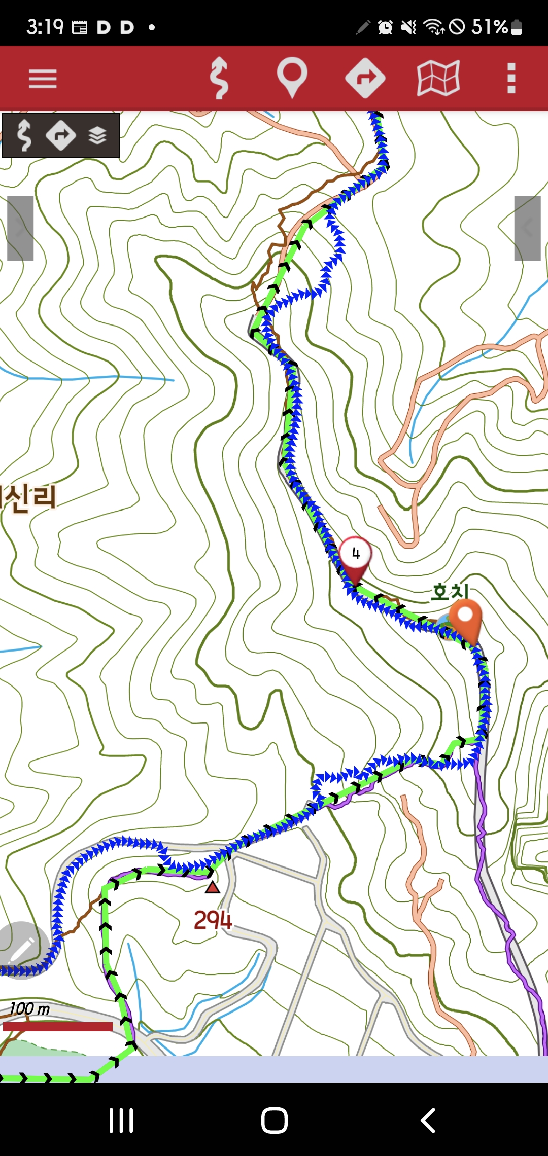 -고도340m 지점 북서릉진행-삼각점봉 273m-북동릉진행 하산-산수동 동쪽길 따라진행-회산 179m