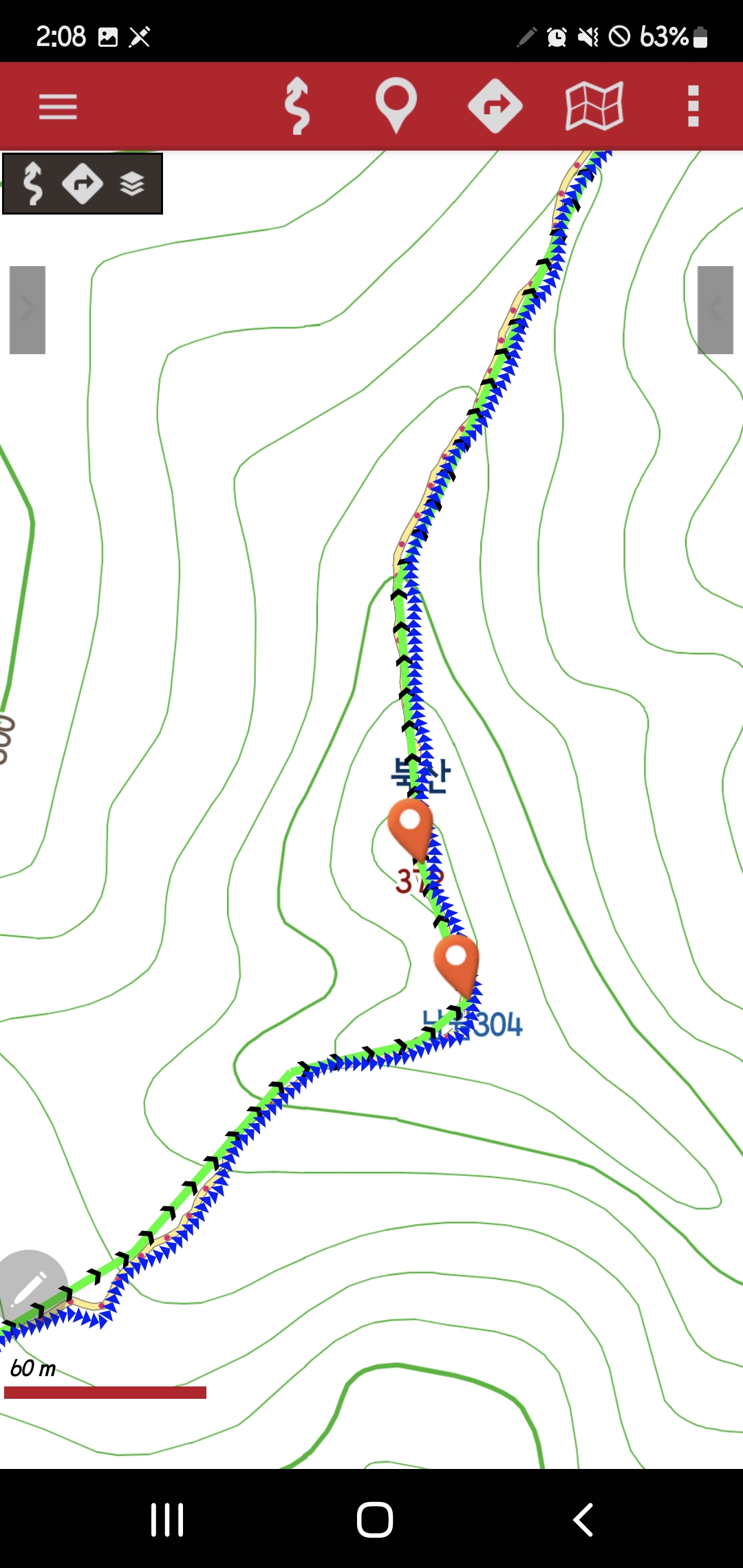 -동릉진입-336봉-등로 지저분합니다-남릉진행-철탑-용북길 도로건너-294봉-북동릉진입-주능선합류