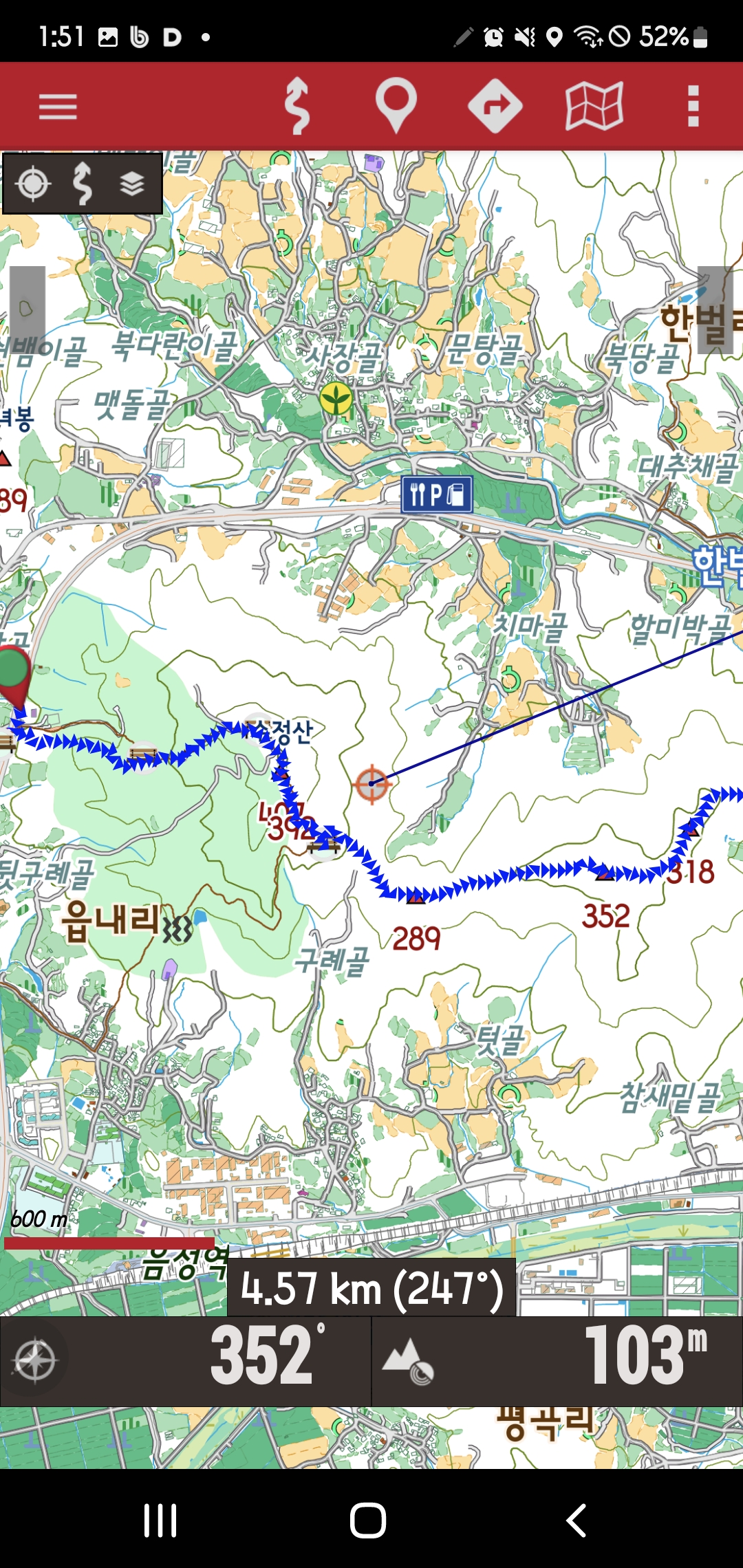 -무네미산(수리봉) 352m-동릉진행-318봉-북동릉진행,잠시후 동릉진행 하산-임도길 따라가다가