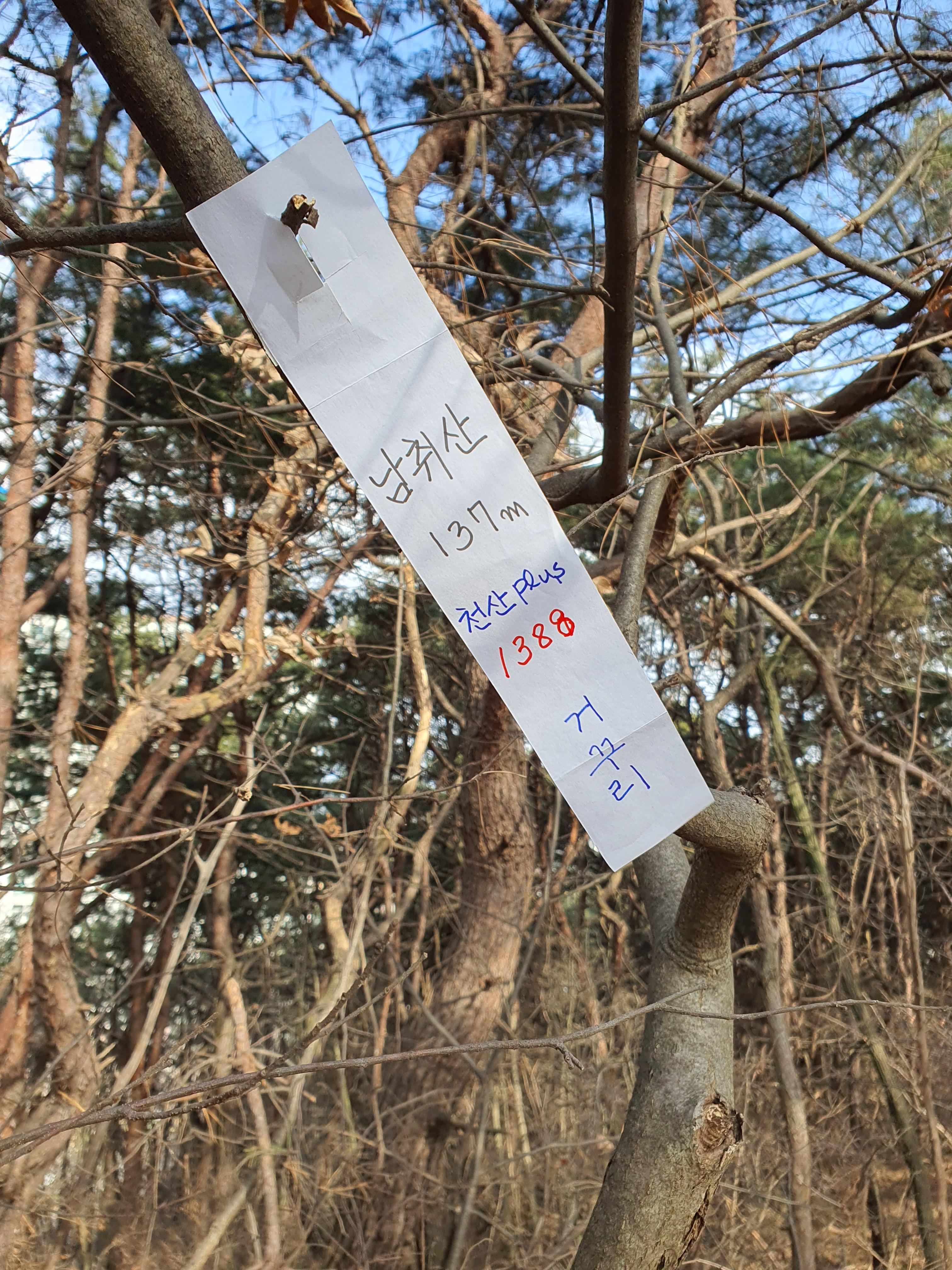 -쇠실골 삼거리 북릉진행-송동,태동버스정류장-도로건너-북동릉진입-남취산 137m-북동릉진행 하산-주천천 비웅교건너