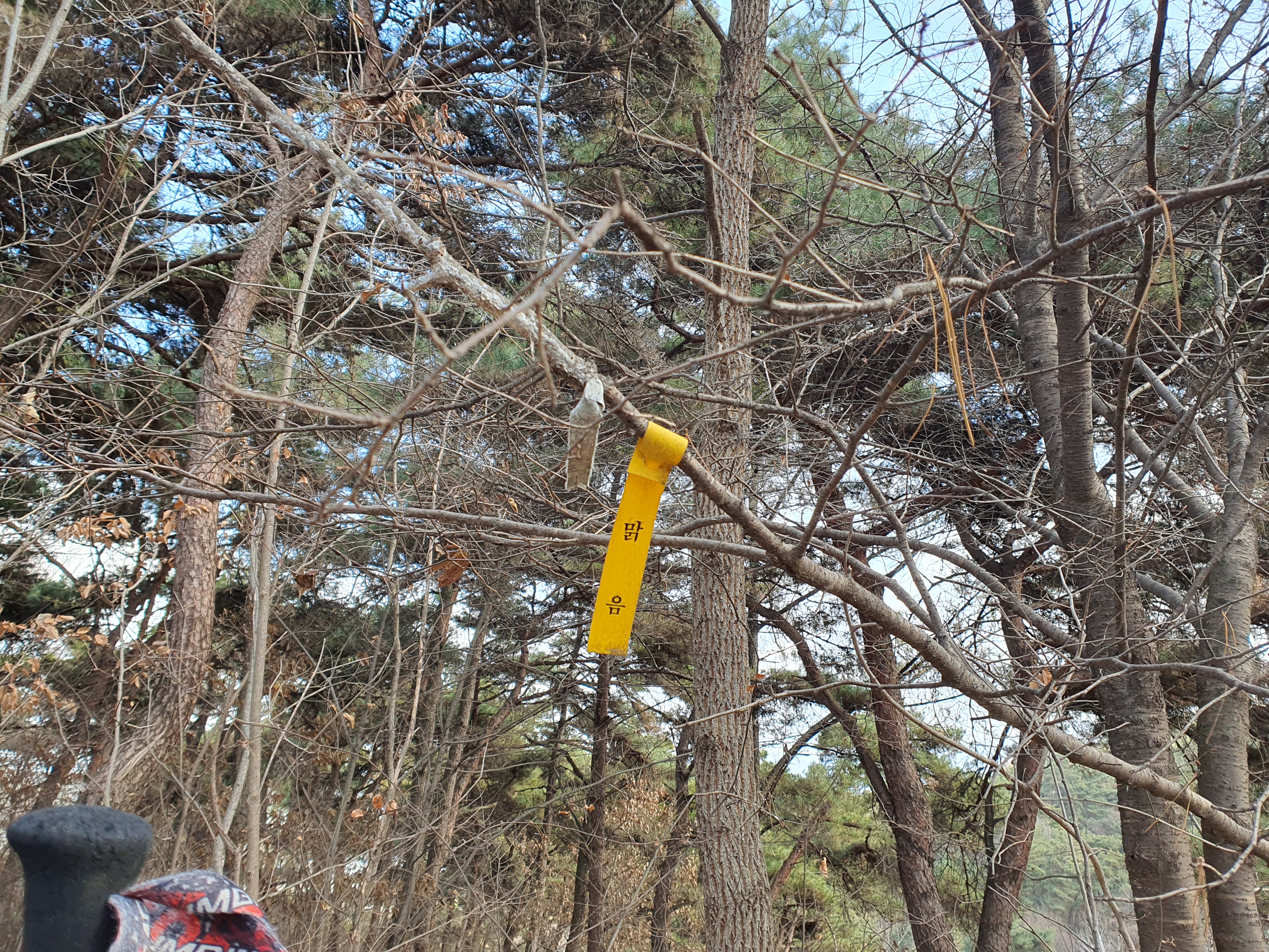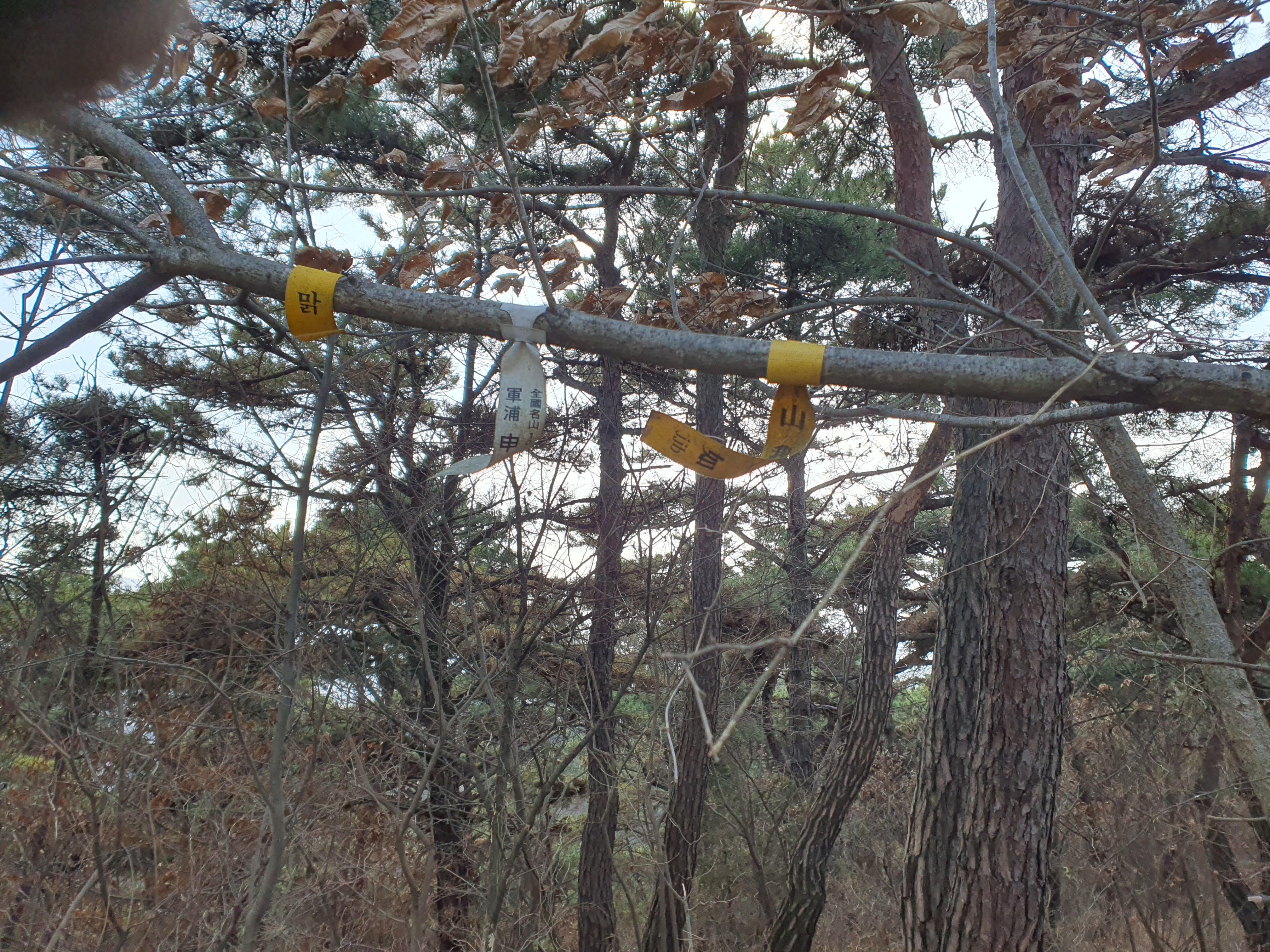 -북동릉진입-184봉-웃굴산(비구봉) 197m-남서릉 조금 뒤로 가서-안부-남동방향 계곡실 하산-장절골-노송로 도로 건너