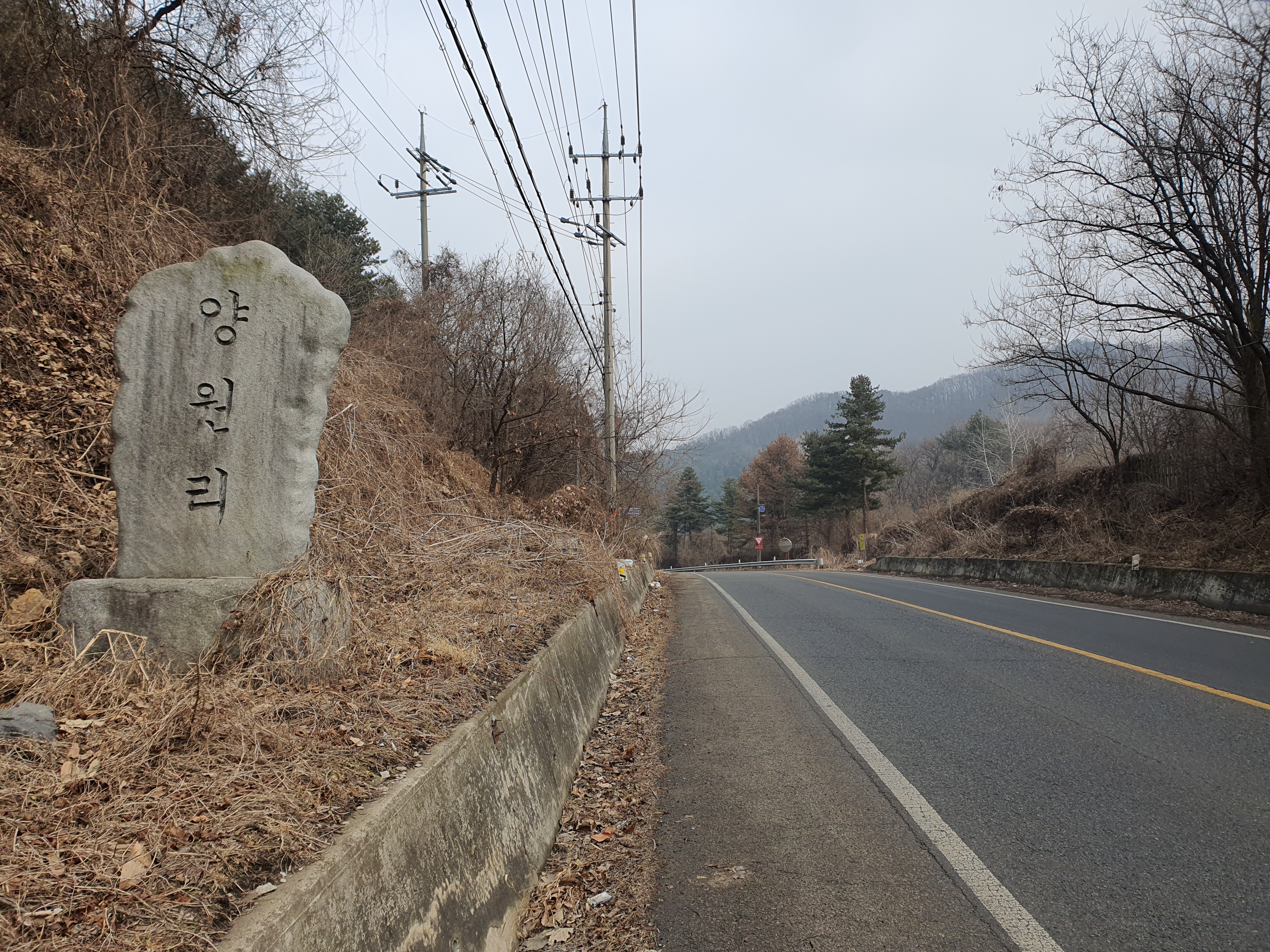 -옥녀봉 280m-북서릉진행 하산-양연로 도로건너-포장도로 북서방향 진입-삼각점봉 113m-서서북 방향 도로따라진행