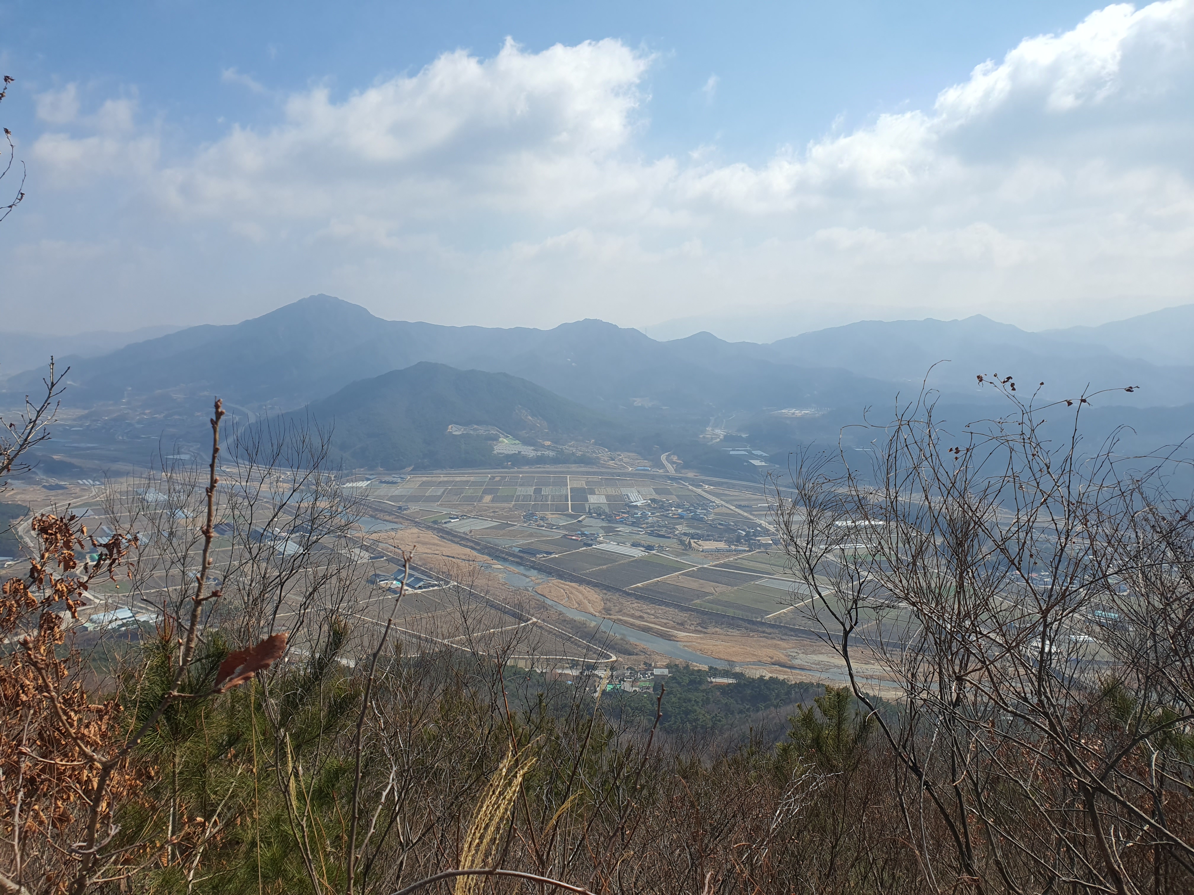 가야할 천황지맥길 우측이 남대문치 좌측으로 지맥길 천황산이 조망됩니다