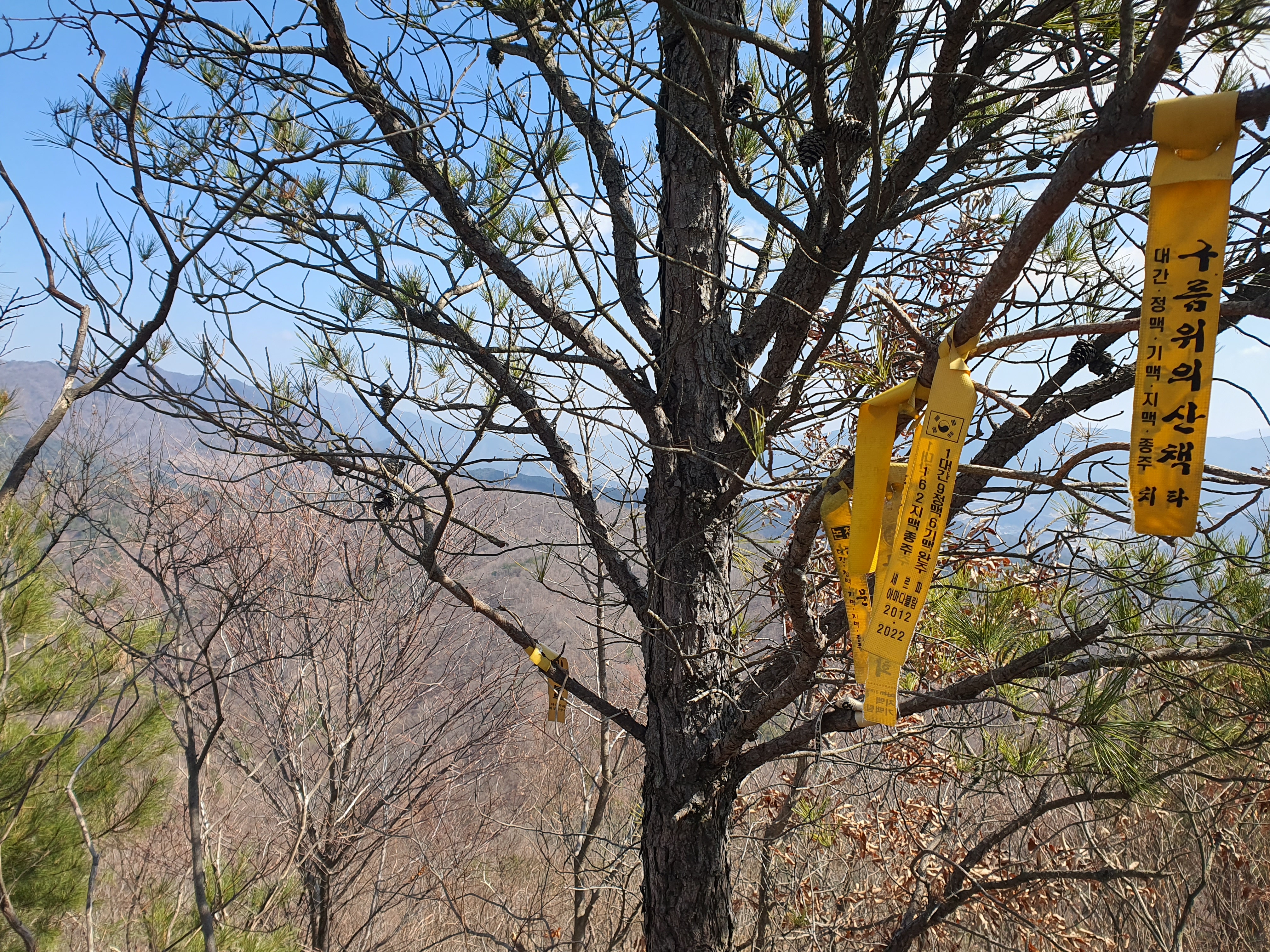 잘못 붙인 성산 표지기 성산은 조금 더 올라 가야합니다