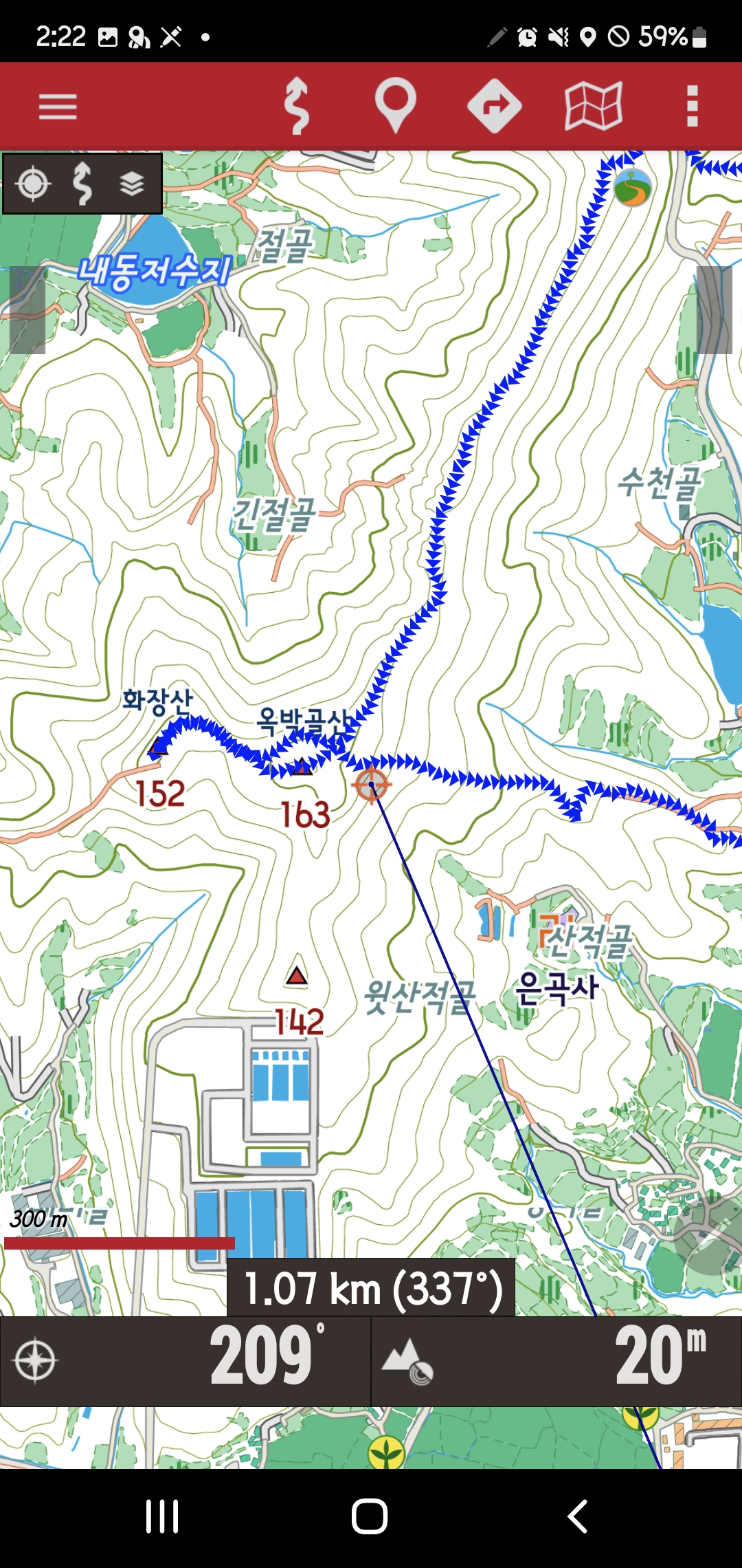 -능선삼거리로 돌아가서-동릉진행-옥박골산 163m,삼각점-동릉진행 하산-개미잔골-태산로 동쪽도로따라